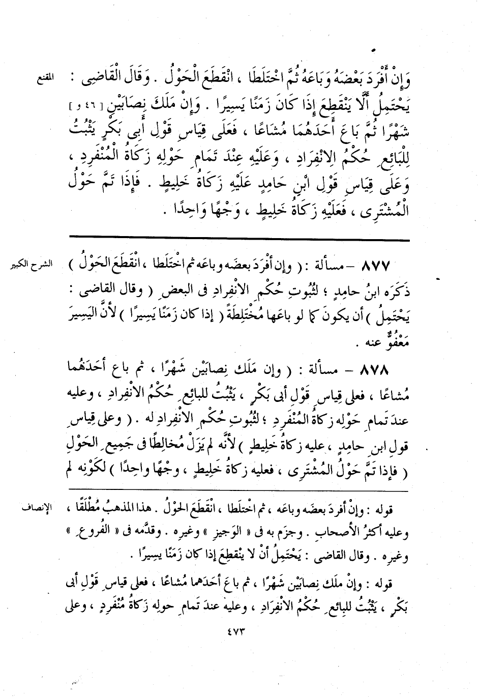 قوله: وإنْ أفردَ بعضَه وباعَه، ثم اخْتلَطا، انْقَطَعَ الحوْلُ. هذا المذهبُ مُطْلَقًا، وعليه أكثرُ الأصحابِ. وجزَم به فى «الوَجيزِ» وغيرِه. وقدَّمه فى «الفُروعِ» وغيرِه. وقال القاضى: يَحْتَمِلُ أنْ لا ينْقطِعَ إذا كان زَمَنًا يسِيرًا.