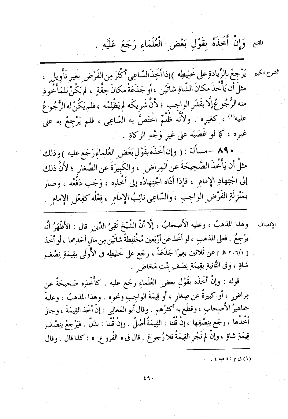 قوله: وإنْ أخَذَه بقَوْلِ بعضِ العُلَماءِ رجَع عليه. كأَخْذِه صَحيحَةً عن مِراضٍ، أو كبيرةً عن صِغارٍ، أو قِيمَةَ الواجِبِ ونحوِه. وهذا المذهبُ، وعليه جماهيرُ الأصحابِ، وقطَع به أكثرُهم. وقال أبو المَعالِى: إنْ أخَذ القِيمَةَ، وجازَ أخْذُها، رجَع بنِصْفِها، إنْ قُلْنا: القِيمَةُ أصْلٌ. وإنْ قُلْنا: بدَلٌ. فيَرْجِعُ بنِصْفِ قِيمَةِ شاةٍ، وإنْ لم تَجُزِ القِيمَةُ فلا رُجوع. قال فى «الفُروعِ»: كذا قال. وقال