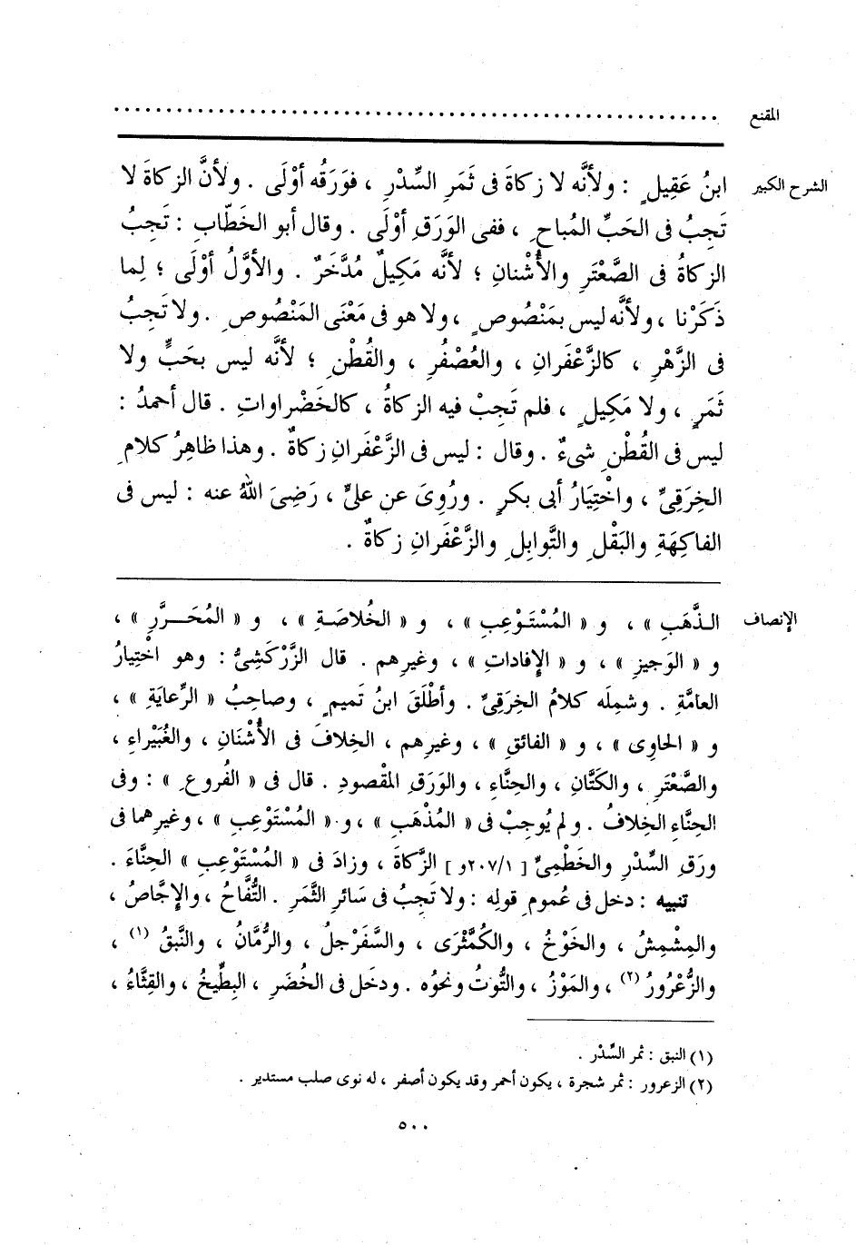الذَّهَبِ»، و «المُسْتَوْعِبِ»، و «الخُلاصَةِ»، و «المُحَرَّرِ»، و «الوَجيزِ»، و «الإِفاداتِ»، وغيرِهم. قال الزَّرْكَشِىُّ: وهو اخْتِيارُ العامَّةِ. وشمِلَه كلامُ الخِرَقِىِّ. وأطْلَقَ ابنُ تَميمٍ، وصاحِبُ «الرِّعايَةِ»، و «الحاوِى»، و «الفائقِ»، وغيرِهم، الخِلافَ فى الأشْنَانِ، والغُبَيْراءِ، والصَّعْتَرِ، والكَتَّانِ، والحِنَّاءِ، والوَرَقِ المقْصودِ. قال فى «الفُروعِ»: وفى الحِنَّاءِ الخِلافُ. ولم يُوجِبْ فى «المُذْهَبِ»، و «المُسْتَوْعِبِ»، وغيرِهما فى ورَقِ السِّدْرِ والخَطْمِىِّ الزَّكاةَ، وزادَ فى «المُسْتَوْعِبِ» الحِنَّاءَ.