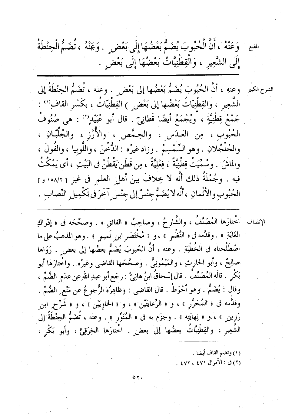 اخْتارَها المُصَنِّفُ، والشَّارِحُ، وصاحِبُ «الفائقِ». وصحَّحَه فى «إدْراكِ الغَايَةِ». وقدَّمه فى «النَّظْمِ»، و «مُخْتَصَرِ ابنِ تَميمٍ». وهو المذهبُ على ما اصْطَلْحناه فى الخُطْبَةِ. وعنه، أنَّ الحُبوبَ يُضَمُّ بعضُها إلى بعضٍ. رَوَاها صالِحٌ، وأبو الحارِثِ، والمَيْمُونِىُّ. وصحَّحَها القاضى وغيرُه. واخْتارَها أبو بَكْرٍ. قالَه المُصَنِّفُ. قال إسْحاقُ ابن هانِئٍ: رجَع أبو عبدِ اللَّهِ عن عدَمِ الضَّمِّ، وقال: يُضَمُّ. وهو أحْوَطُ. قال القاضى: وظاهِرُه الرُّجوعُ عن مَنْعِ الضَّمِّ. وقدَّمه فى «المُحَرَّرِ»، و «الرِّعايتَيْن»، و «الحاوِيَيْن»، و «شَرْحِ ابنِ رَزِينٍ»، و «نِهايَتِه». وجزَم به فى «المُنَوِّرِ». وعنه، تُضَمُّ الحِنْطةُ إلى الشَّعِيرِ، والقِطْنِيَّاتُ بعضُها إلى بعضٍ. اخْتارَها الخِرقِىُّ، وأبو بَكْرٍ،