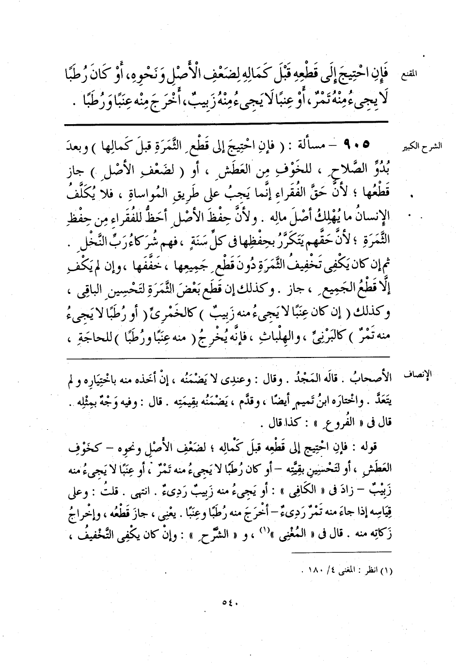 قوله: فإنِ احْتِيج إلى قَطْعِه قبلَ كَمْالِه؛ لضَعْفِ الأصْلِ ونحوِه -كخَوْفِ العَطَشِ، أو لتَحْسِينِ بقِيَّته- أو كان رُطبًا لا يَجِئُ منه تَمْرٌ، أو عِنَبًا لا يَجِئُ منه زَبِيْبٌ -زادَ فى «الكَافِى»: أو يَجِئُ منه زَبِيبٌ رَدِئٌ. انتهى. قلتُ: وعلى قِيَاسِه إذا جاءَ منه تَمْر رَدِئٌ- أخْرَجَ منه رُطَبًا وعِنَبًا. يعْنِى، جازَ قَطْعُه، وإخْراجُ زَكاتِه منه. قال فى «المُغْنِى» (¬1)، و «الشَّرحِ»: وإنْ كان يكْفِى التَّخْفيفُ،