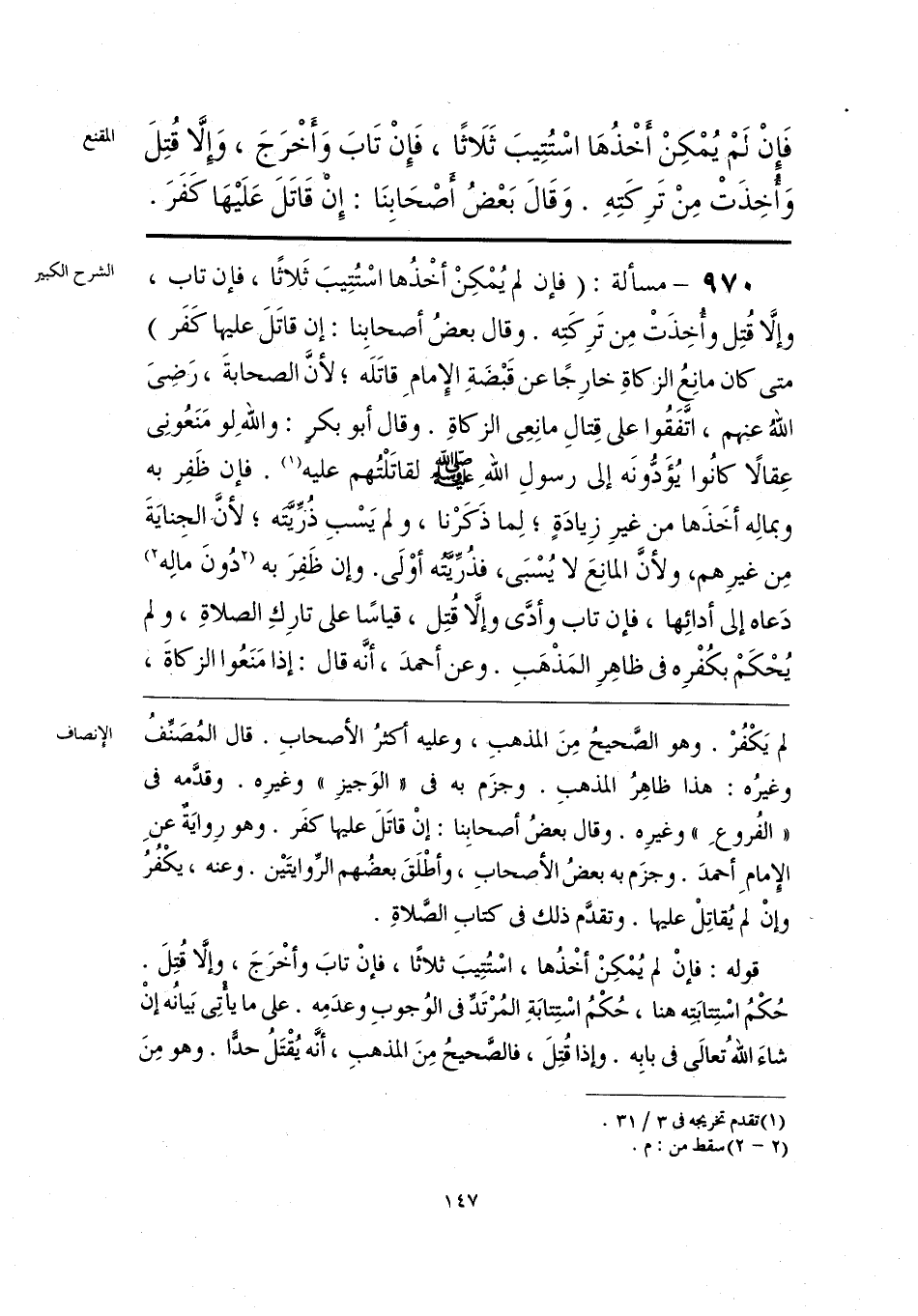 قوله: فإنْ لم يُمْكِنْ أخْذُها، اسْتُتِيبَ ثلاثًا، فإنْ تابَ وأخْرَجَ، وإلَّا قُتِلَ. حُكْمُ اسْتِتابَتِه هنا، حُكْمُ اسْتِتابَةِ المُرْتَدِّ فى الوُجوبِ وعدَمِه. على ما يَأْتِى بَيانُه إنْ شاءَ اللَّهُ تعالَى فى بابِه. وإذا قُتِلَ، فالصَّحيحُ مِنَ المذهبِ، أنَّه يُقْتَلُ حدًّا. وهو مِنَ