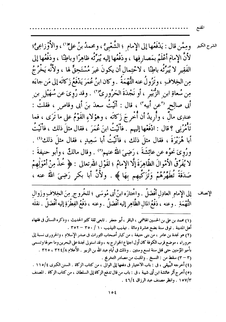 إلى الإِمامِ العادِلِ أفْضَلُ. واخْتارَه ابنُ أبى مُوسَى، للخُروجِ مِنَ الخِلافِ وزَوالِ التُّهْمَةِ. وعنه، دَفْعُ المالِ الظَّاهِرِ إليه أفْضَلُ. وعنه، دَفْعُ الفِطْرَةِ إليه أفْضَلُ. نقلَه