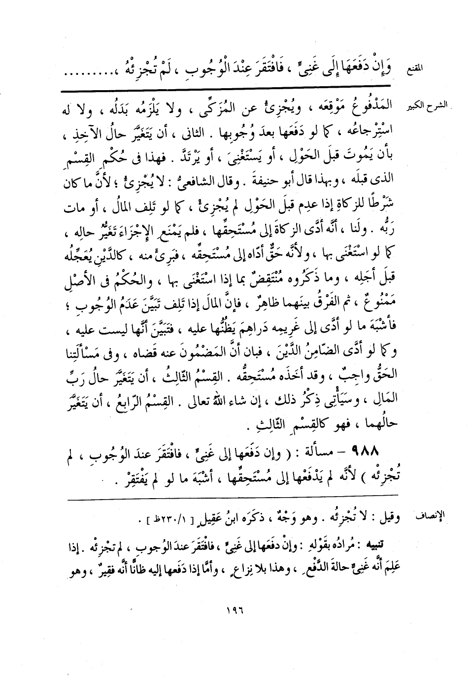 تنبيه: مُرادُه بقَوْلهِ: وإنْ دفَعَها إلى غَنِىٍّ، فافْتَقَرَ عندَ الوُجوبِ، لم تجْزِئْه. إذا عَلِمَ أنَّه غَنِىٌّ حالةَ الدَّفْعِ، وهذا بلا نِزاعٍ، وأمَّا إذا دَفَعها إليه ظانًّا أنَّه فقِيرٌ، وهو