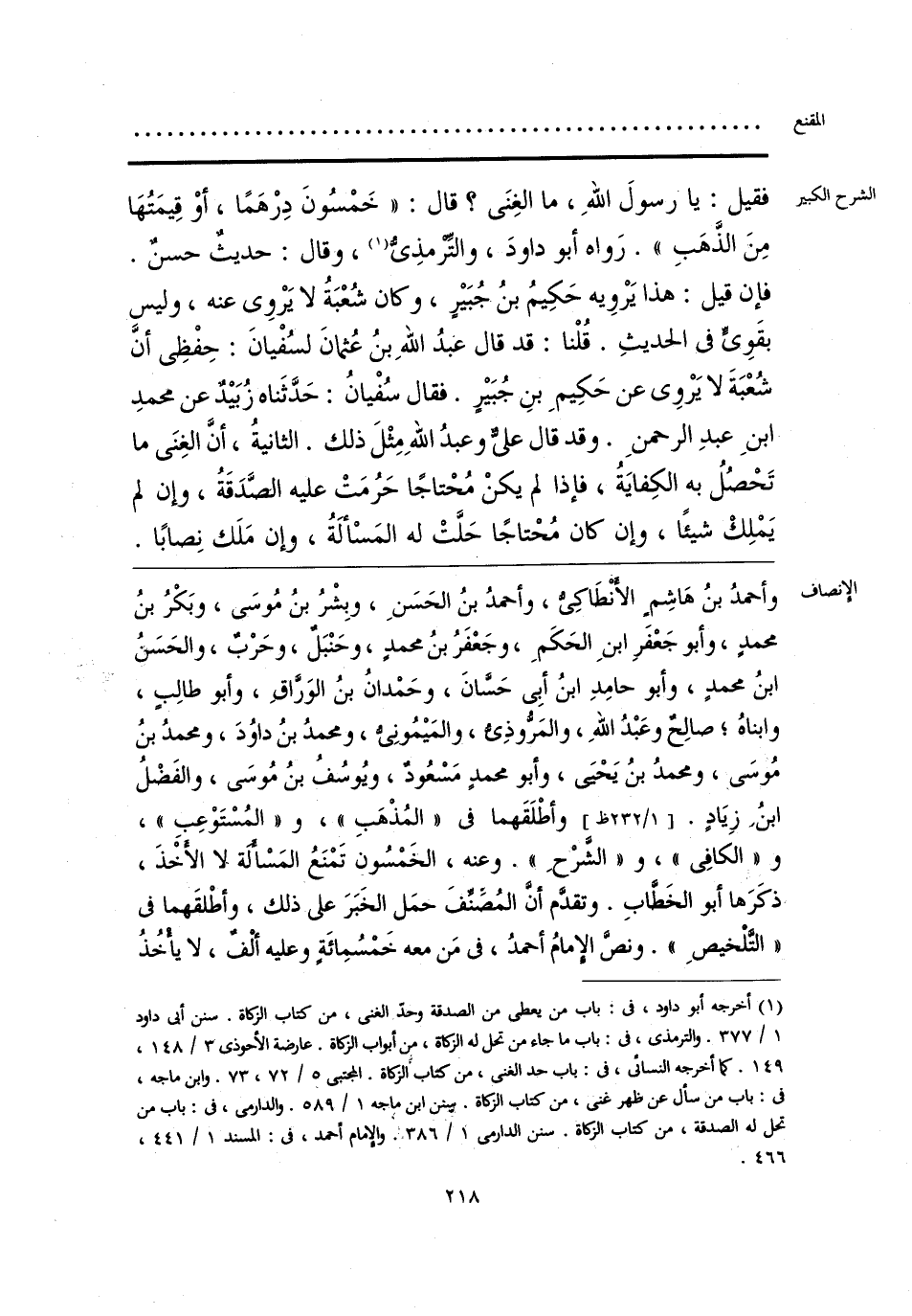 وأحمدُ بنُ هَاشِمٍ الأَنْطَاكِىُّ، وأحمدُ بنُ الحَسَنِ، وبِشْرُ بنُ مُوسَى، وبَكْرُ بنُ محمدٍ، وأبو جَعْفَرِ ابنِ الحَكَمِ، وجَعْفرُ بنُ محمدٍ، وحَنْبَلٌ، وحَرْبٌ، والحَسَنُ ابنُ محمدٍ، وأبو حامِدِ ابنُ أبِى حَسَّانَ، وحَمْدانُ بنُ الوَرَّاقِ، وأبو طالِبٍ، وابناهُ؛ صالِحٌ وعَبْدُ اللَّهِ، والمَرُّوذِىُّ، والمَيْمُونِىُّ، ومحمدُ بنُ داوُدَ، ومحمدُ بنُ مُوسَى، ومحمدُ بنُ يَحْيَى، وأبو محمدٍ مَسْعُودٌ، ويُوسُفُ بنُ مُوسَى، والفَضْلُ ابنُ زِيَادٍ. وأطْلَقَهما فى «المُذْهَبِ»، و «المُسْتَوْعِبِ»، و «الكافِى»، و «الشَّرْحِ». وعنه، الخَمْسُون تَمْنَعُ المَسْأْلَة لا الأَخْذَ، ذكَرَها أبو الخَطَّابِ. وتقدَّم أنَّ المُصَنِّفَ حمَل الخَبَرَ على ذلك، وأطْلقَهما فى «التَّلْخيصِ». ونصَّ الإِمامُ أحمدُ، فى مَن معه خَمْسُمِائَةٍ وعليه ألْفٌ، لا يأْخُذُ