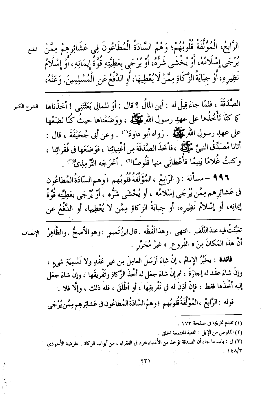 الرَّابِعُ، الْمُؤلَّفَةُ قُلُوبُهُم؛ وَهُمُ السَّادَةُ الْمُطَاعُونَ فى عَشَائِرِهِمْ مِمَّنْ يُرْجَى إِسْلَامُهُ، أَوْ يُخْشى شَرُّهُ، أَوْ يُرْجى بِعَطِيَّتِهِ قُوَّةُ إِيمَانِهِ، أَو إِسْلَامُ نَظِيرِهِ، أو جِبَايَةُ الزَّكَاةِ مِمَّنْ لَا يُعْطِيهَا، أَوِ الدَّفْعُ عَنِ الْمُسْلِمِينَ. وَعَنْهُ،