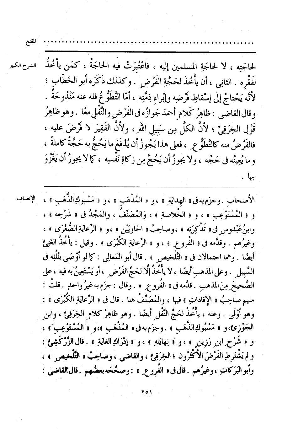 الأصحابِ. وجزَم به فى «الهِدايَةِ»، و «المُذْهَبِ»، و «مَسْبوكِ الذَّهَبِ»، و «المُسْتَوْعِبِ»، و «الخُلاصةِ»، والمُصَنِّفُ، والمَجْدُ فى «شَرْحِه»، وابنُ عَبْدوسٍ فى «تَذْكِرَتِه»، وصاحِبُ «الحاويَيْن»، و «الرِّعايَةِ الصُّغْرَى»، وغيرُهم. وقدَّمه فى «الفُروعِ»، و «الرِّعايَةِ الكُبْرَى». وقيل: يأْخُذُ الغَنِيُّ أيضًا. وهما احتمالان فى «التَّلْخيصِ». قال أبو المَعالِى: كما لو أوْصَى بثُلُثِه فى السَّبِيلِ. وعلى المذهبِ أيضًا، لا يأْخُذُ إلَّا لحَجِّ الفَرْضِ، أو يَسْتَعِينُ به فيه، على الصَّحيحِ مِنَ المذهبِ. قدَّمه فى «الفُروعِ». وقال: جزَم به غيرُ واحدٍ. قلت: منهم صاحِبُ «الإِفاداتِ» فيها، والمُصَنِّفُ هنا. قال فى «الرِّعايَةِ الكُبْرَى»: وهو أوْلَى. وعنه، يأْخُذُ لحَجِّ النَّفْلِ أيضًا. وهو ظاهِرُ كلامِ الخِرَقِىِّ، وابن الجَوْزِىِّ، و «مَسْبُوكِ الذَّهَبِ». وجزَم به فى «المُذهَبِ»، و «المُسْتَوْعِبِ»، و «شَرْحِ ابنِ رَزِينٍ»، و «نِهايَتهِ»، و «إدْرَاكِ الغايَةِ». قال الزَّرْكَشِىُّ: ولم يَشْتَرِطِ الفَرْضَ الأَكْثَرُون؛ الخِرَقِىُّ، والقاضى، وصاحِبُ «التَّلْخيصِ»، وأبو البَرَكاتِ، وغيرُهم. قال فى «الفُروعِ»: وصحَّحَه بعضُهم. قال القاضى: