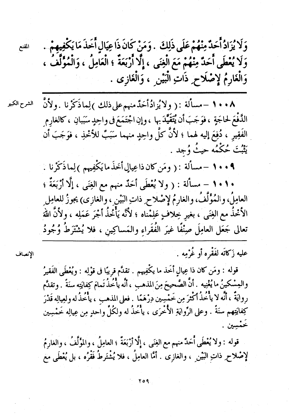 وَلَا يُزَادُ أَحَدٌ مِنْهُمْ عَلَى ذَلِكَ. وَمَنْ كَانَ ذَا عِيَالٍ أخَذَ مَا يَكْفِيهِمْ. وَلَا يُعْطَى أَحَدٌ مِنْهُمْ مَعَ الْغِنَى، إلَّا أَرْبَعَةٌ؛ الْعَامِلُ، وَالْمُؤَلَّفُ، وَالْغَارِمُ لإصْلَاحِ ذَاتِ البَيْنِ، وَالْغَازِى.