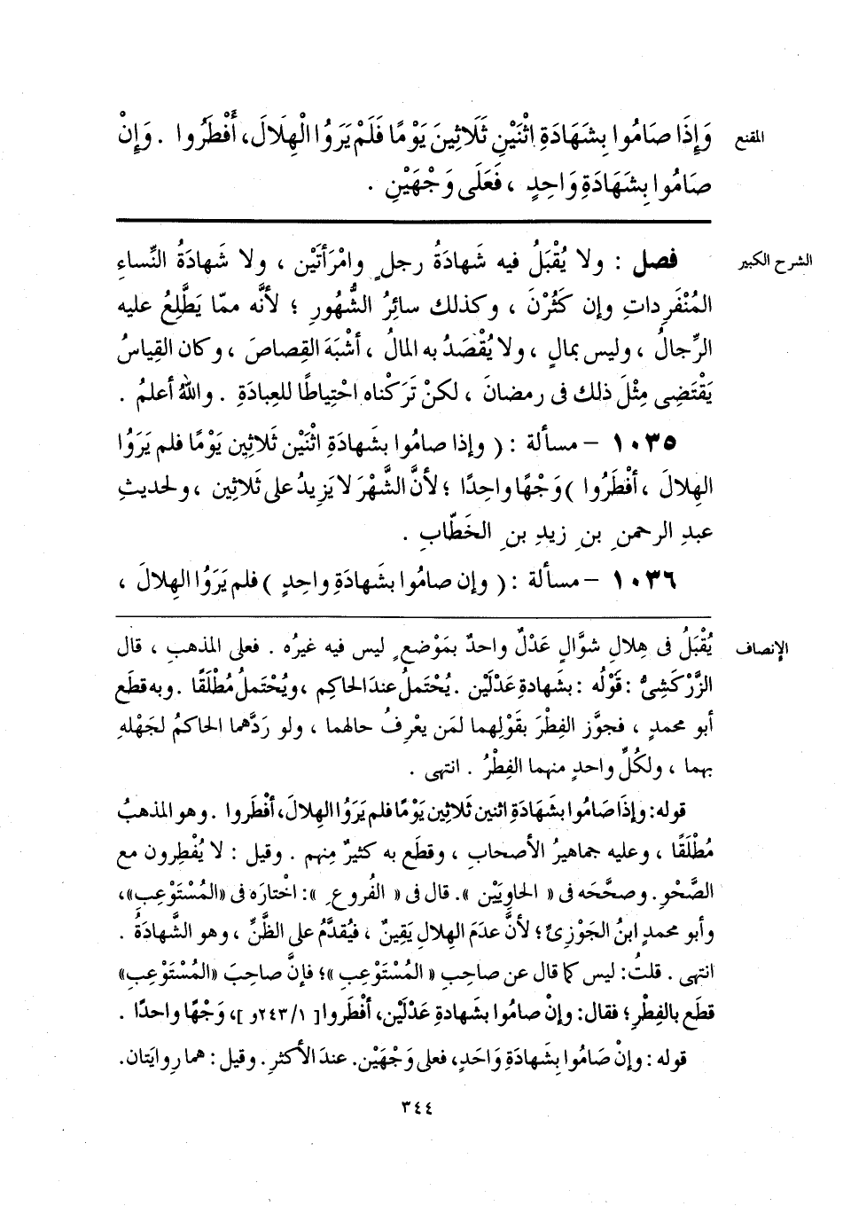 قوله: وإنْ صَامُوا بِشَهادَةِ وَاحَدٍ، فعلى وَجْهَيْن. عندَ الأكثرِ. وقيل: هما رِوايَتان.