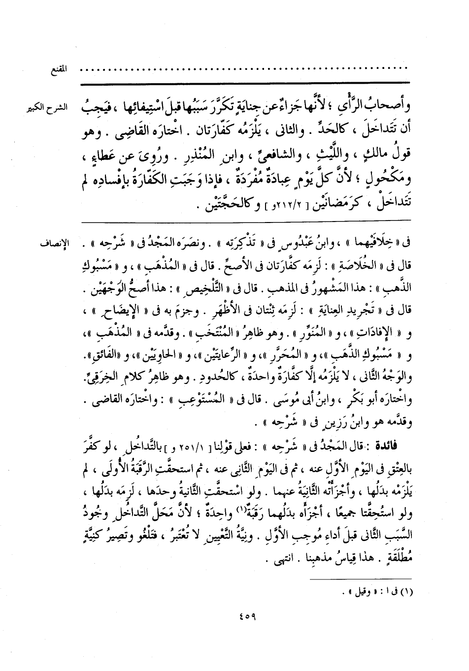 في «خِلَافَيْهما»، وابنُ عَبْدُوسٍ فى «تَذْكِرَتِه». ونصَرَه المَجْدُ فى «شَرْحِه». قال فى «الخُلَاصَةِ»: لَزِمَه كفَّارَتان فى الأصحِّ. قال في «المُذْهَبِ»، و «مَسْبُوكِ الذَّهبِ»: هذا المَشْهورُ فى المذهبِ. قال فى «التَّلْخِيصِ»: هذا أصحُّ الوَجْهَيْن. قال في «تَجْرِيدِ العِنايَةِ»: لَزِمَه ثِنْتان فى الأظْهَرِ. وجزمَ به فى «الإِيضَاحِ»، و «الإِفادَاتِ»، و «المُنَوِّرِ». وهو ظاهِرُ «المُنْتَخَبِ». وقدَّمه فى «المُذْهَبِ»، و «مَسْبُوكِ الذَّهَبِ»، و «المُحَرَّرِ»، و «الرِّعايتَيْن»، و «الحاوِيَيْن»، و «الفَائقِ». والوَجْهُ الثَّانى، لا يَلْزَمُه إلَّا كفَّارَةٌ واحدَةٌ، كالحُدودِ. وهو ظاهِرُ كلامِ الخِرَقىِّ. واخْتارَه أبو بَكْرٍ، وابنُ أبى مُوسَى. قال فى «المُسْتَوْعِبِ»: واخْتارَه القاضى. وقدَّمه هو وابنُ رَزِينٍ فى «شَرْحِه».