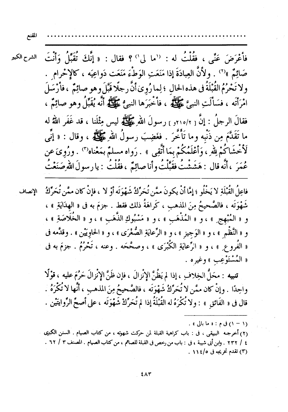 تنبيه: محَلُّ الخِلافِ، إذا لم يَظُنَّ الإِنْزالَ، فإن ظَنَّ الإِنْزالَ حَرُمَ عليه، قوْلاً واحِدًا. وإنْ كان ممَّن لا تُحَرَّكُ شَهْوَتَه، فالصَّحيحُ مِنَ المذهبِ، أنَّها لا تُكْرَهُ. قال فى «الفَائقِ»: ولا تُكْرَهُ له القُبْلَةُ إذا لم تُحَرِّكْ شَهْوَتَه، على أصحِّ الرِّوايتَيْن.