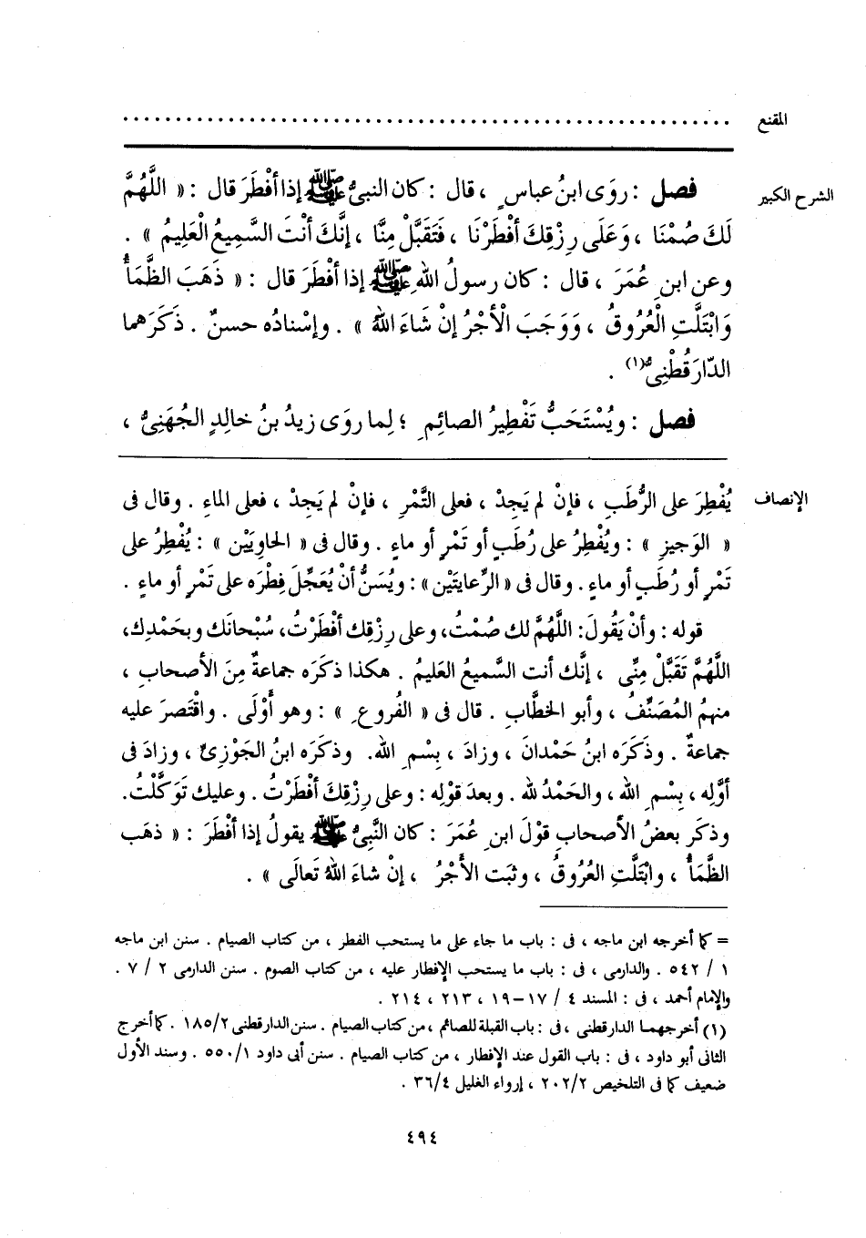 قوله: وأنْ يَقُولَ: اللَّهُمَّ لك صُمْتُ، وعلى رِزْقِك أفْطَرْتُ، سُبْحانَك وبحَمْدِك، اللَّهُمَّ تَقَبَّلْ مِنِّى، إنَّك أنت السَّميعُ العَليمُ. هكذا ذكَرَه جماعةٌ مِنَ الأصحابِ، منهمُ المُصَنِّفُ، وأبو الخطَّابِ. قال فى «الفُروعِ»: وهو أوْلَى. واقْتَصرَ عليه جماعةٌ. وذَكَرَه ابنُ حَمْدانَ، وزادَ، بِسْمِ الله. وذكَرَه ابنُ الجَوْزِىِّ، وزادَ فى أوَّلِه، بِسْمِ الله، والحَمْدُ لله. وبعدَ قوْلِه: وعلى رِزْقِكَ أفْطَرْتُ. وعليك تَوَكَّلْتُ. وذكَر بعضُ الأصحابِ قوْلَ ابنِ عُمَرَ: كان النَّبِىُّ - صلى الله عليه وسلم - يقولُ إذا أفْطَرَ: «ذهَب الظَّمَأُ، وابْتَلَّتِ العُرُوقُ، وثبَت الأَجْرُ، إنْ شاءَ اللهُ تَعالَى».