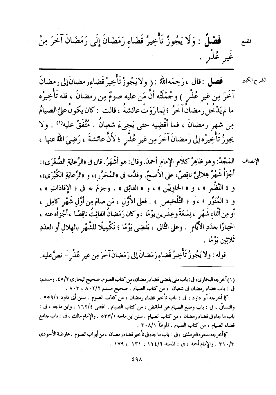 قوله: ولا يَجُوزُ تَأْخِيرُ قَضاءِ رَمَضانَ إلى رَمَضانَ آخَرَ مِن غيرِ عُذْرٍ - نصَّ عليه.