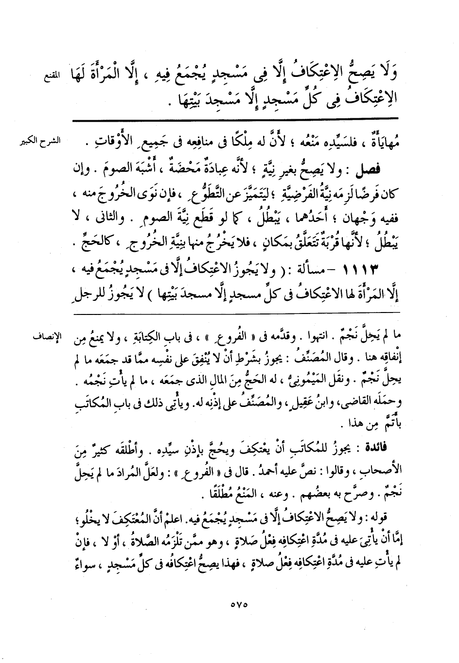 وَلَا يَصِحُّ الِاعْتِكَافُ إِلَّا فِي مَسْجِدٍ يُجْمَعُ فِيهِ، إِلَّا الْمَرْأَةَ لَهَا الِاعْتِكَافُ فِي كُلِّ مَسْجِدٍ إِلَّا مَسْجِدَ بَيْتِهَا.
