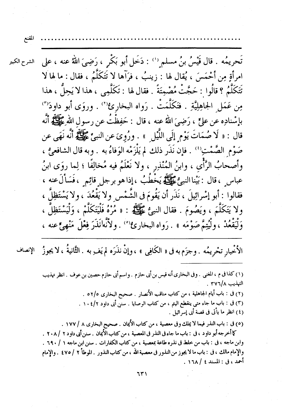 الأخْبارِ تحْرِيمُه. وجزَم به فى «الكَافِى»، وإنْ نذَرَه لم يَفِ به. الثَّانيةُ، لا يجوزُ