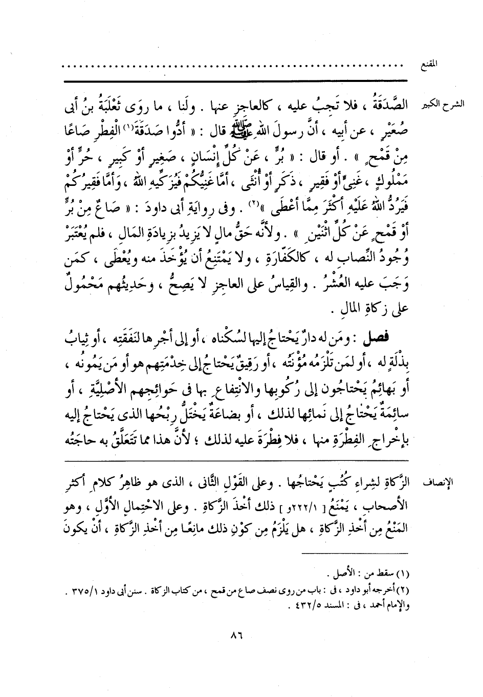 الزَّكاةِ لشِراءِ كُتُبٍ يَحْتاجُها. وعلى القَوْلِ الثَّانى، الذى هو ظاهِرُ كلامِ أكثرِ الأصحابِ، يَمْنَعُ ذلك أخْذَ الزَّكاةِ. وعلى الاحْتِمالٍ الأوَّلِ، وهو المَنْعُ مِن أخْذِ الزَّكاةِ، هل يَلْزَمُ مِن كوْنِ ذلك مانِعًا مِن أخْذِ الزَّكاةِ، أنْ يكونَ