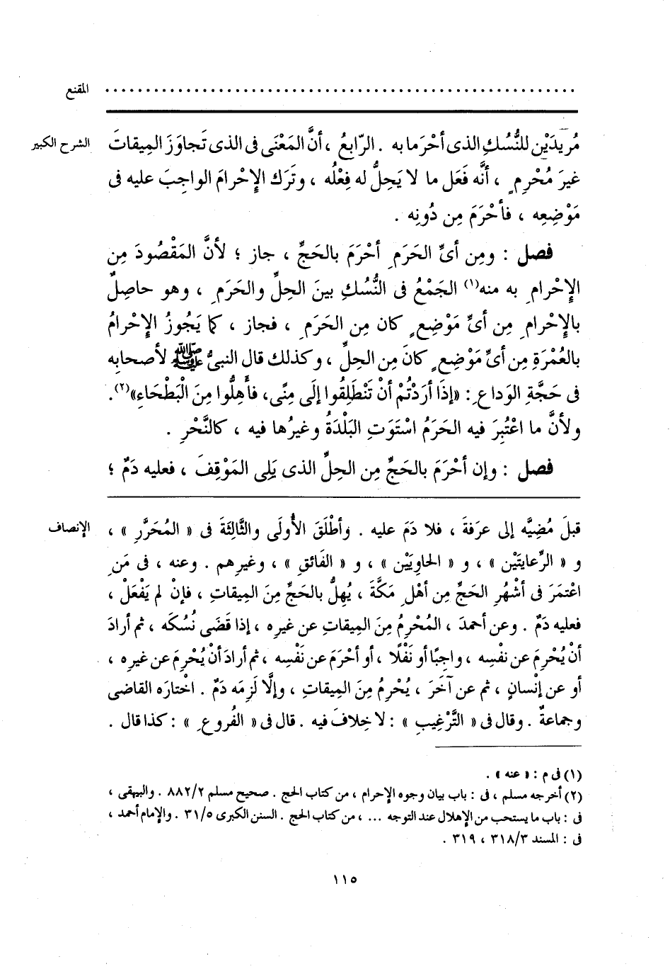 قبلَ مُضِيَّه إلى عرَفةَ، فلا دَمَ عليه. وأطْلَقَ الأُولَى والثَّالِثَةَ في «المُحَرَّرِ»، و «الرِّعايتَيْن»، و «الحاوِيَيْن»، و «الفَائقِ»، وغيرِهم. وعنه، في مَنِ اعْتمَرَ في أشْهُرِ الحَجِّ مِن أهْلِ مَكَّةَ، يُهِلُّ بالحَجِّ مِنَ المِيقاتِ، فإنْ لم يَفْعَلْ، فعليه دَمٌ. وعن أحمدَ، المُحْرِمُ مِنَ المِيقاتِ عن غيرِه، إذا قَضَى نُسُكَه، ثم أرادَ أنْ يُحْرِمَ عن نفْسِه، واجبًا أو نَفْلًا، أو أحْرَمَ عن نَفْسِه، ثم أرادَ أنْ يُحْرِمَ عن غيرِه، أو عن إنْسانٍ، ثم عن آخَرَ، يُحْرِمُ مِنَ المِيقاتِ، وإلاَّ لَزِمَه دَمٌ. اخْتارَه القاضى وجماعةٌ. وقال في «التَّرْغِيبِ»: لا خِلافَ فيه. قال في «الفُروعِ»: كذا قال.