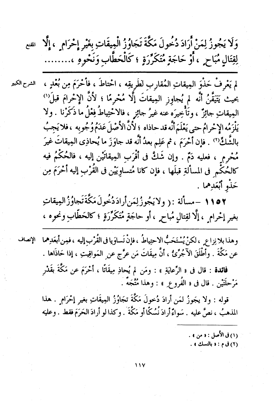 وَلَا يَجُوزُ لِمَنْ أَرَادَ دُخُولَ مَكَّة تَجَاوُزُ الْمِيقَاتِ بِغيْرِ إِحْرَامٍ، إِلَّا لِقِتَالٍ مُبَاحٍ، أَوْ حَاجَةٍ مُتَكَرِّرَةٍ؛ كَالْحَطَّابِ وَنَحْوِهِ،