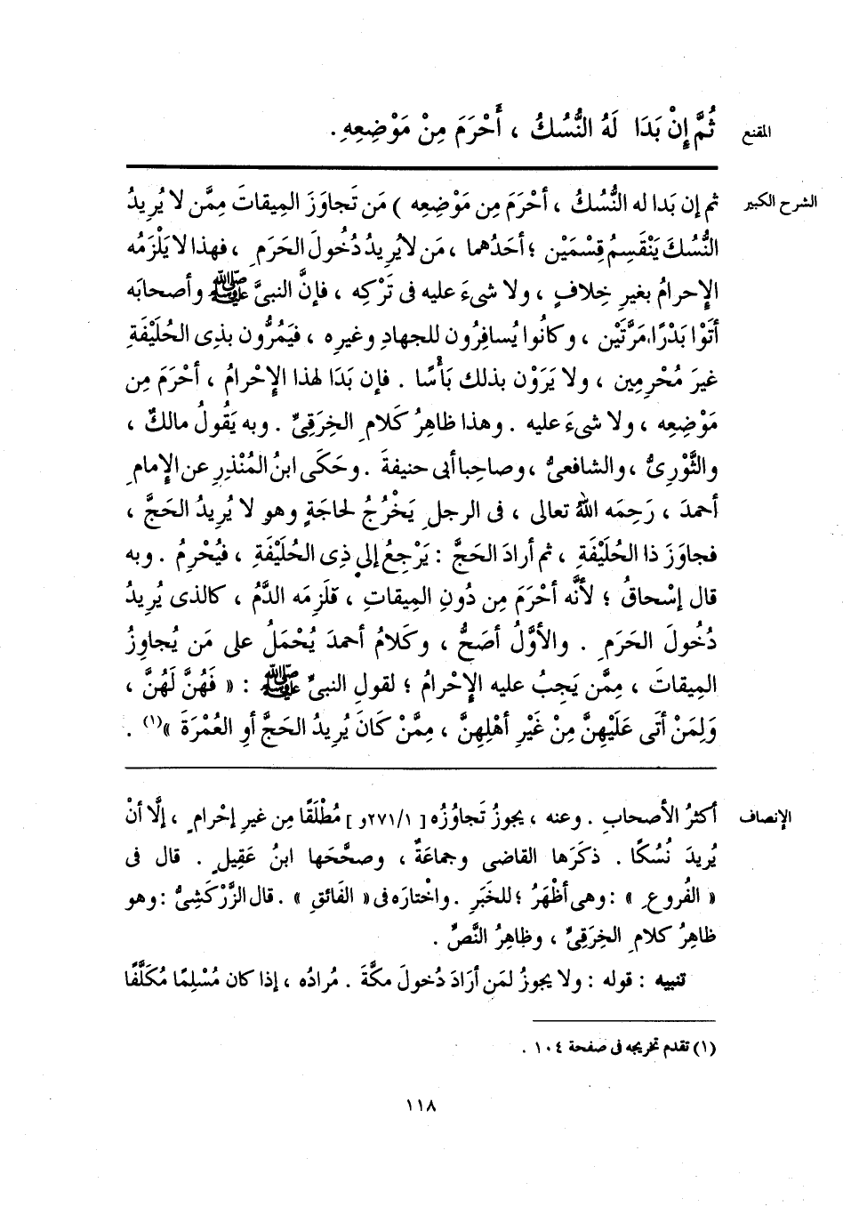 أكثرُ الأصحابِ. وعنه، يجوزُ تَجاوُزُه مُطْلَقًا مِن غيرِ إحْرامٍ، إلَّا أنْ يُريدَ نُسُكًا. ذكَرَها القاضى وجماعَةٌ، وصحَّحَها ابنُ عَقِيلٍ. قال في «الفُروعِ»: وهى أظْهَرُ؛ للخَبَرِ. واخْتارَه في «الفَائقِ». قال الزَّرْكَشِيُّ: وهو ظاهِرُ كلامِ الخِرَقِىِّ، وظاهِرُ النَّصِّ.