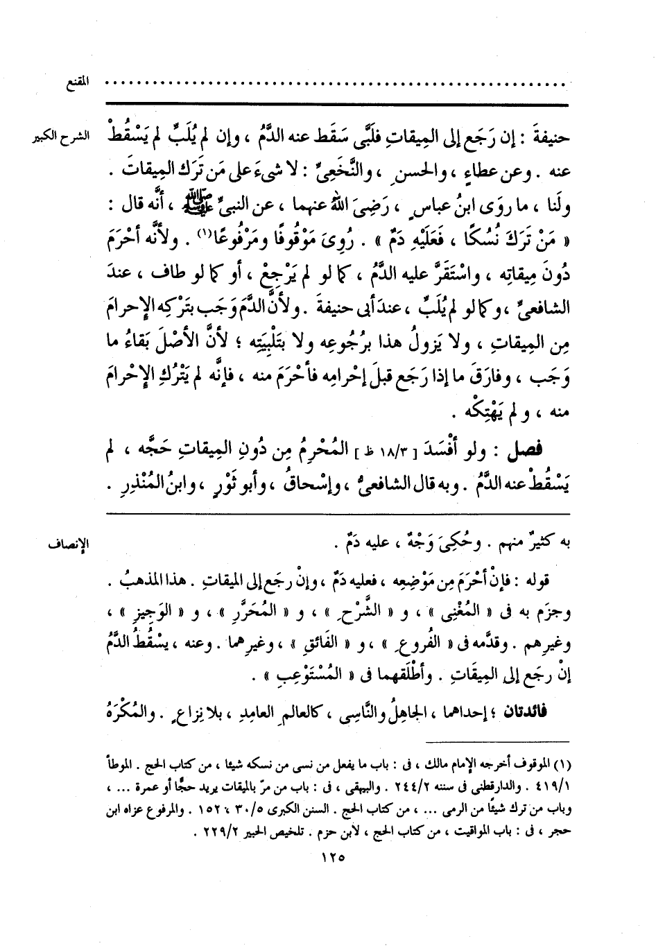 قوله: فإنْ أحْرَمَ مِن مَوْضِعِه، فعليه دَمٌ، وإنْ رجَع إلى الميقاتِ. هذا المذهبُ. وجزَم به في «المُغْنِى»، و «الشَّرْحِ»، و «المُحَرَّرِ»، و «الوَجِيزِ»، وغيرِهم. وقدَّمه في «الفُروعِ»، و «الفَائقِ»، وغيرِهما. وعنه، يسْقُطُ الدَّمُ إنْ رجَع إلى المِيقَاتِ. وأطْلَقهما في «المُسْتَوْعِبِ».