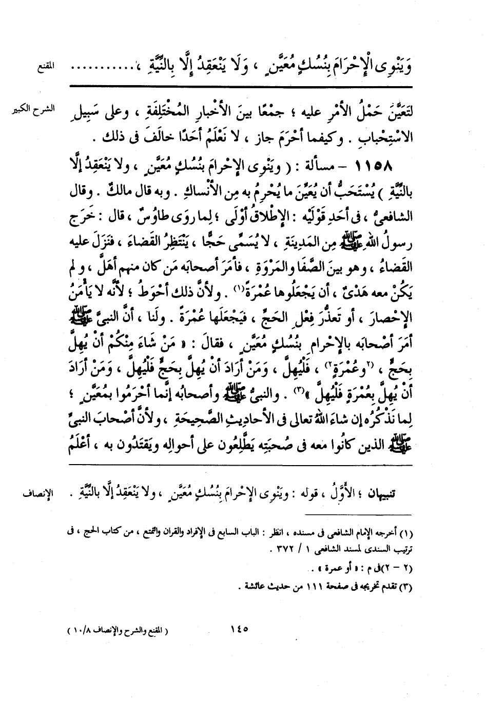 تنبيهان؛ الأوَّلُ، قوله: ويَنْوِى الإحْرامَ بِنُسُكٍ مُعَيَّنٍ، ولا يَنْعَقِدُ إلَّا بالنِّيَّةِ.