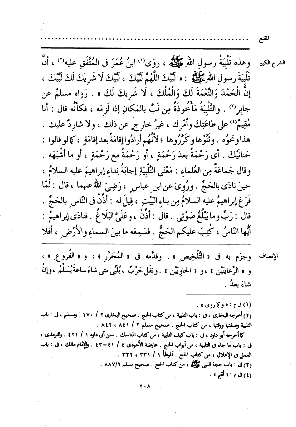 وجزَم به فى «التَّلْخِيصِ». وقدَّمه فى «المُحَرَّرِ» و «الفُروعِ»، و «الرِّعايتَيْن»، و «الحاوِيَيْن». ونقَل حَرْبٌ، يُلَبِّى متى شاءَ ساعةَ يُسَلِّمُ، وإنْ شاءَ بعدُ.