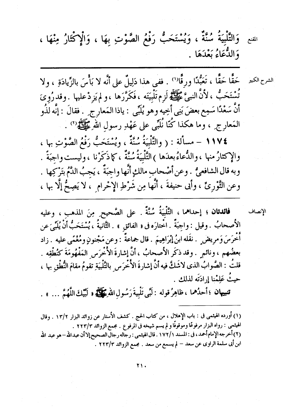 فائدتان؛ إحداهما، التَّلْبِيَةُ سُنَّةٌ. على الصَّحيحِ مِنَ المذهب، وعليه الأصحابُ. وقيل: واجِبَةٌ. اخْتارَه فى «الفائقِ». الثَّانيةُ، يُسْتَحَبُّ أن يُلَبِّىَ عن أَخْرَسَ وَمرِيضٍ. نقَله ابنُ إبْرَاهِيمَ. قال جماعةٌ: وعن مَجْنونٍ ومُغْمًى عليه. زاد بعضُهم، ونائمٍ. وقد ذكَر الأصحابُ، أنَّ إشارةَ الأَخْرَسِ المَفْهُومَةَ كنُطْقِه. قلتُ: الصَّوابُ الذى لاشَكَّ فيه أنَّ إشارةَ الأَخْرَسِ بالتَّلْبيَةِ تقومُ مقامَ النُّطْقِ بها، حيثُ عَلِمْنا إرادَتَه لذلك.