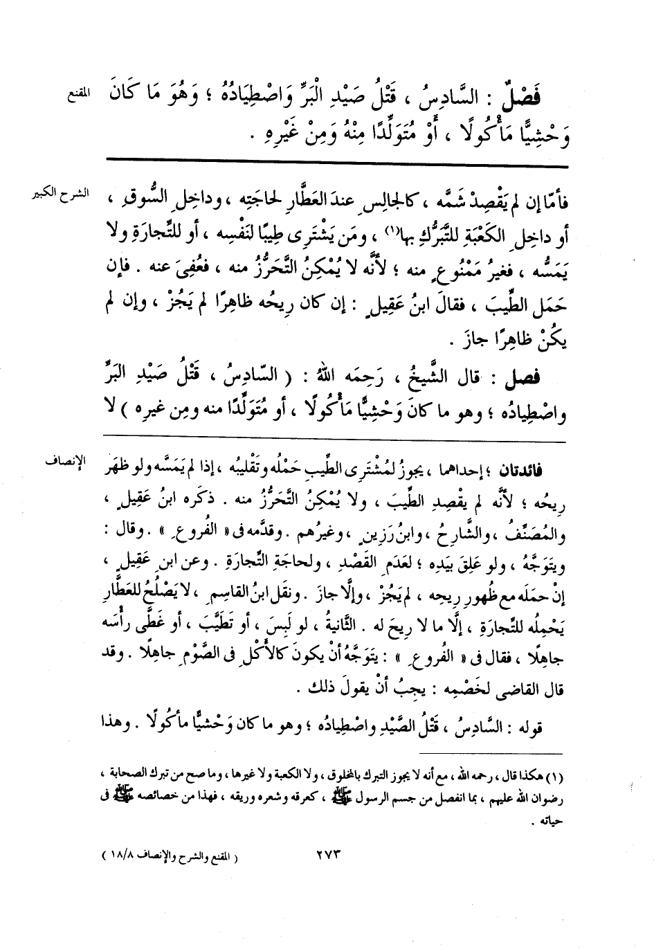 قوله: السَّادِسُ، قَتْلُ الصَّيْدِ واصْطِيادُه؛ وهو ما كان وَحْشيًّا مأكُولًا. وهذا
