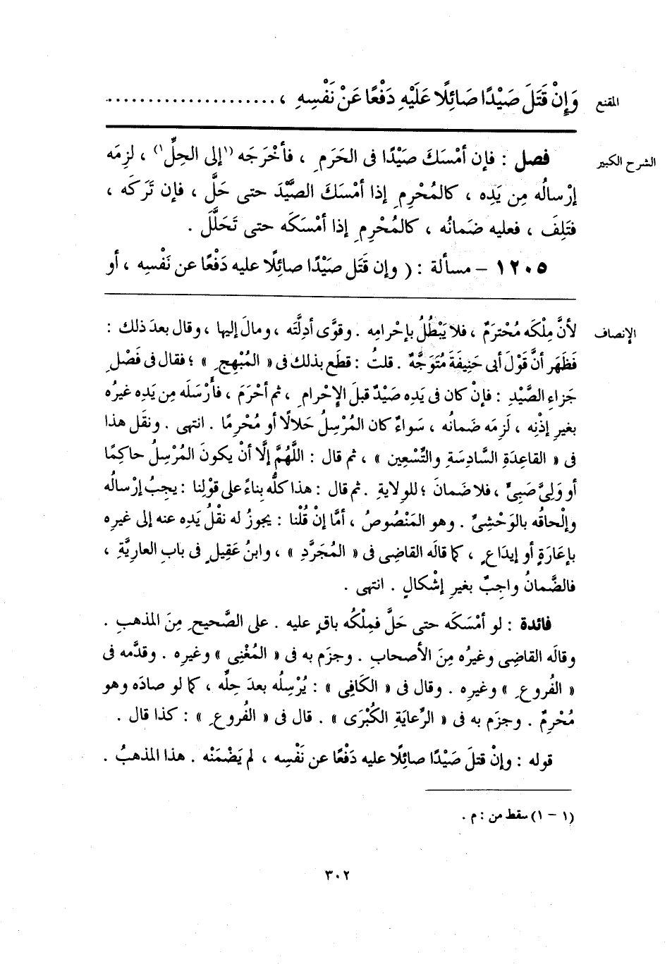 لانَ مِلْكَه مُحْترَمٌ، فلا يَبْطُلُ بإحْرامِه. وقوَّى أدِلَّتَه، ومالَ إليها، وقال بعدَ ذلك: فَظَهَر أنَّ قَوْلَ أبي حَنِيفَةَ مُتَوَجِّهٌ. قلتُ: قطَع بذلك فى «المُبْهِجِ»؛ فقال فى فَصْل جَزاءِ الصَيْدِ: فإنْ كان في يَدِه صَيْد قبلَ الإحْرامِ، ثم أحْرَمَ، فأرْسَلَه مِن يَدِه غيرُه بغيرِ إذْنِه، لَزِمَه ضَمانُه، سَواء كان المُرْسِلُ حَلالاً أو مُحْرِمًا. انتهى. ونقَل هذا فى «القاعِدَةِ السَّادِسَةِ والتِّسْعِين»، ثم قال: اللَّهُمَّ إلَّا أنْ يكونَ المُرْسِلُ حاكِمًا أو وَلِيَّ صَبِيِّ، فلا ضَمانَكما للوِلايةِ. ثم قال: هذا كلُّه بِناءٌ على قوْلِنا: يجِبُ إرْسالُه وإلْحاقُه بالوَحْشِىِّ. وهو المَنْصُوصُ، أمَّا إنْ قُلْنا: يجوزُ له نقْلُ يَدِه عنه إلى غيرِه بإعَارَةٍ أو إيدَاعٍ، كما قالَه القاضِيّ في «المُجَرَّدِ»، وابنُ عَقِيلٍ في بابِ العارِيَّةِ، فالضَّمانُ واجِبٌ بغيرِ إشْكالٍ. انتهى.