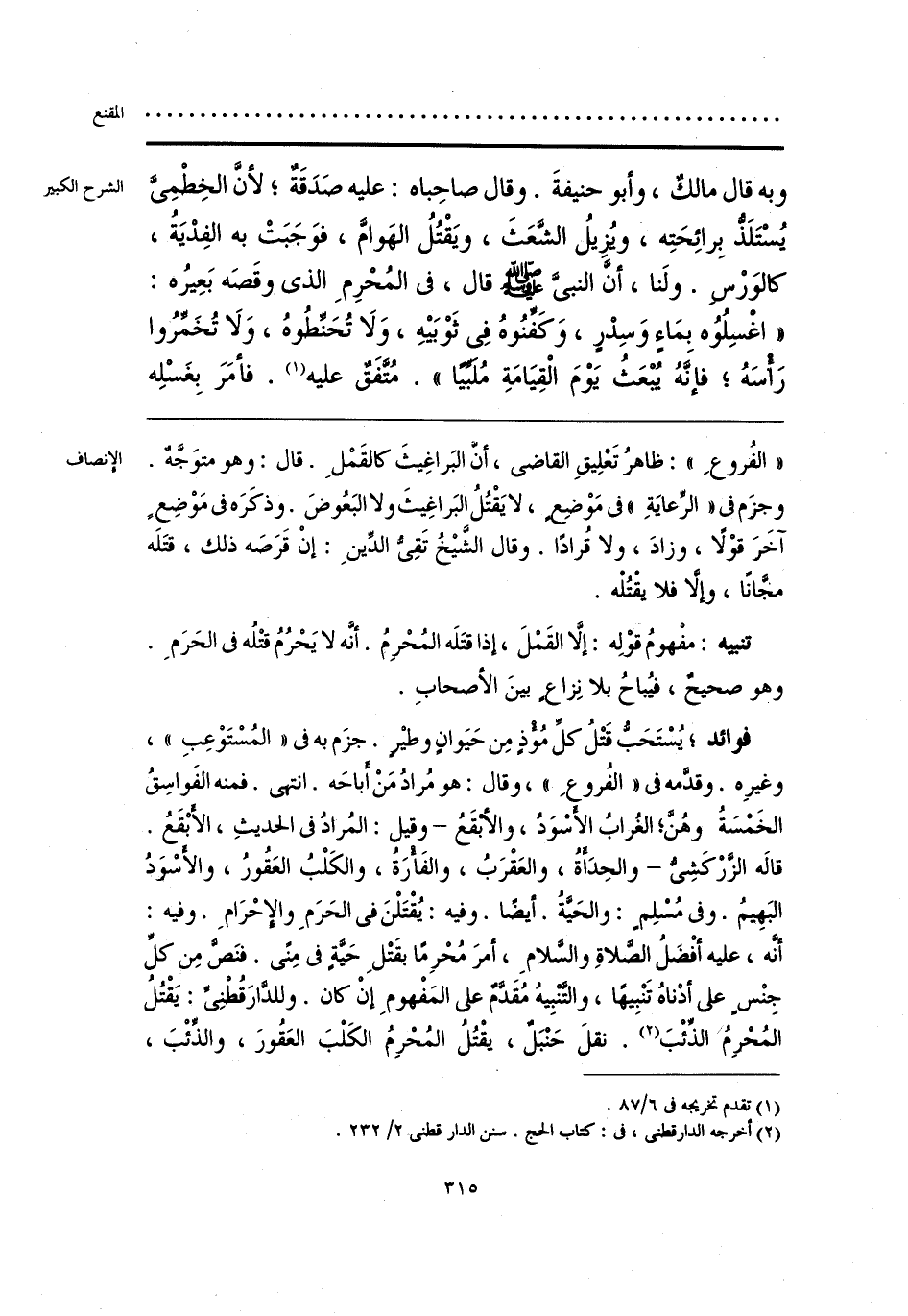 تنبيه: مفْهومُ قوْلِه: إلَّا القَمْلَ، إذا قتَلَه المُحْرِمُ. أنَّه لا يَحْرُمُ قتْلُه في الحَرَمِ. وهو صحيحٌ، فيُباحُ بلا نِزاعٍ بينَ الأصحابِ.