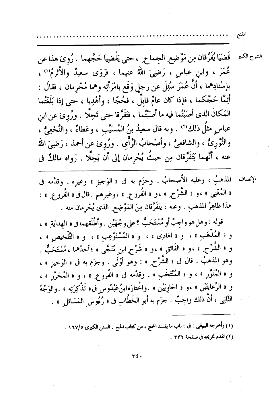المذهبُ، وعليه الأصحابُ. وجزَم به في «الوَجيزِ» وغيرِه. وقدَّمه في «المُغْنِي»، و «الشَرْحِ»، و «الفُروعِ»، وغيرِهم. قال في «الفُروعِ»: هذا ظاهِر المذهبِ. وعنه، يتَفَرَّقان مِنَ المَوْضِعِ الذي يُحْرِمان منه.