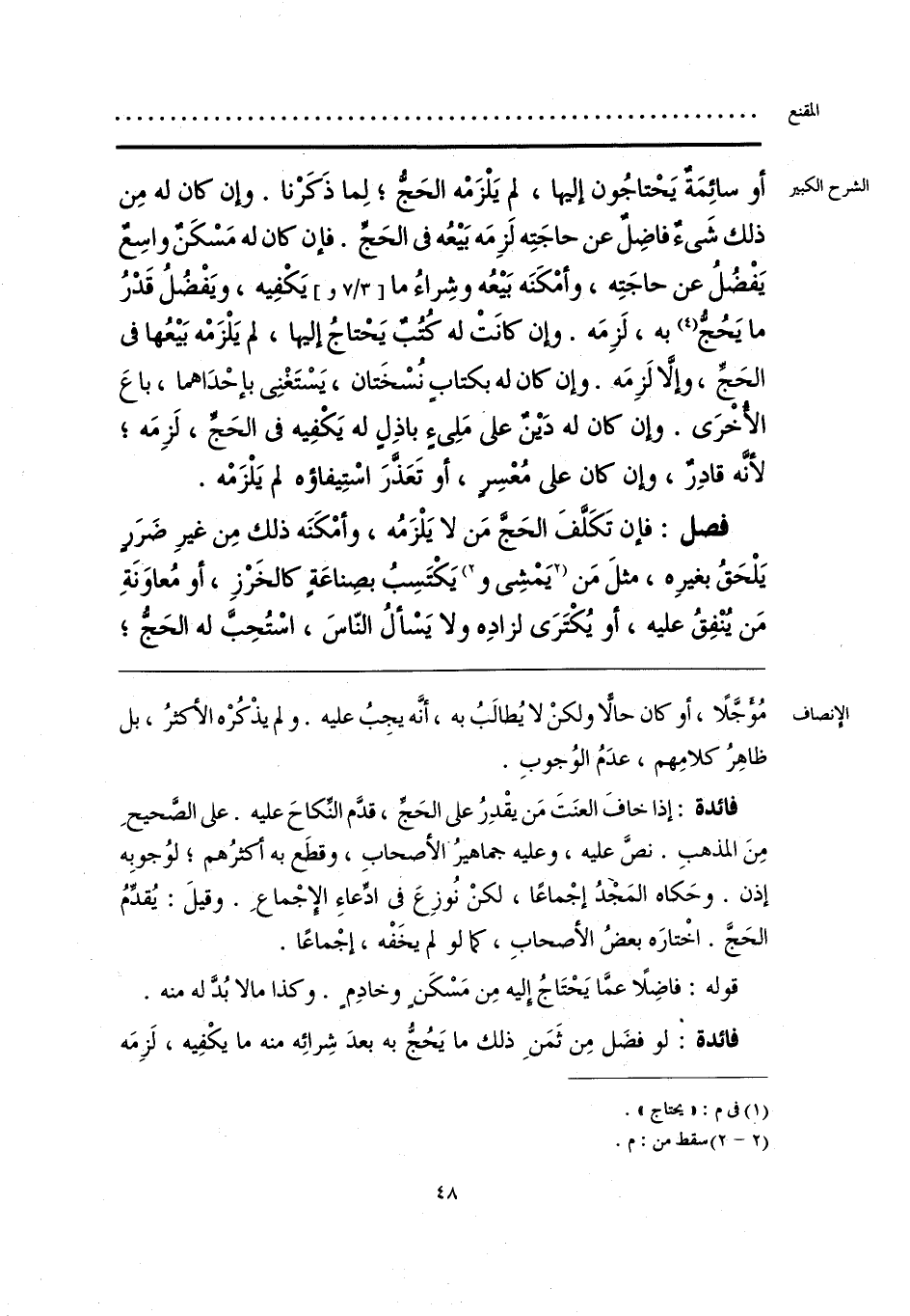 فائدة: إذا خافَ العنَتَ مَن يقْدِرُ على الحَجَّ، قدَّم النِّكاحَ عليه. على الصَّحيحِ مِنَ المذهبِ. نصَّ عليه، وعليه جماهيرُ الأصحابِ، وقطَع به أكثرُهم؛ لوُجوبِه إذن. وحَكاه المَجدُ إجْماعًا، لكنْ نُوزِعَ في ادِّعاءِ الإجْماعِ. وقيلَ: يُقدِّمُ الحَجَّ. اخْتارَه بعضُ الأصحابِ، كما لو لم يخَفْه، إجْماعًا.