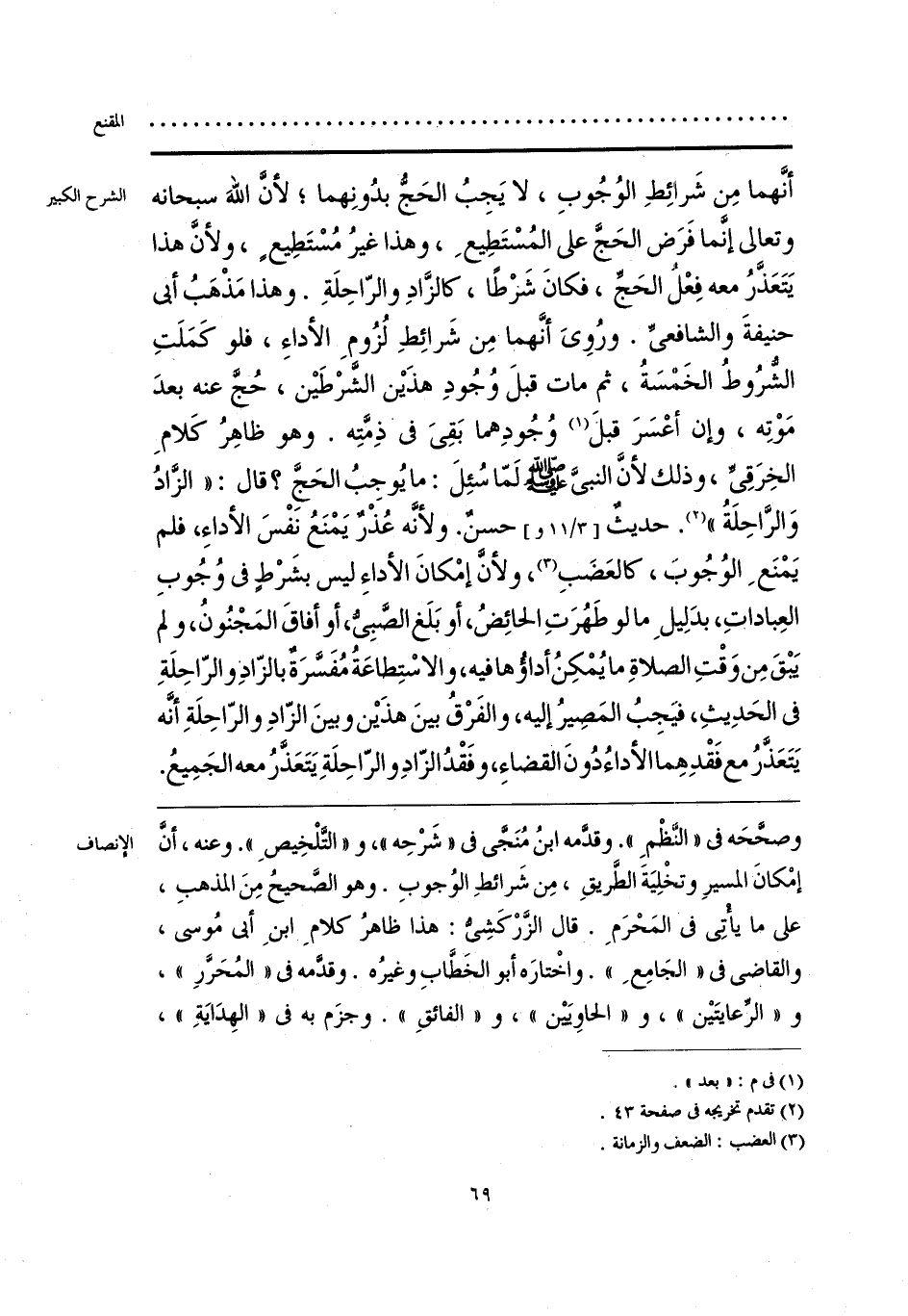 وصحَّحَه فى «النَّظْمِ». وقدَّمه ابنُ مُنَجَّى فى «شَرْحِه»، و «التَّلْخِيصِ». وعنه، أنَّ إمْكانَ المسيرِ وتخْلِيَةَ الطرَّيقِ، مِن شَرائطِ الوُجوبِ. وهو الصَّحيحُ مِنَ المذهبِ، على ما يأْتِى فى المَحْرَمِ. قال الزَّرْكَشِيُّ: هذا ظاهرُ كلامِ ابنِ أبى مُوسى، والقاضى فى «الجَامِعِ». واخْتارَه أبو الخَطَّابِ وغيرُه. وقدَّمه فى «المُحَرَّرِ»، و «الرَّعايتَيْن»، و «الحاوِيَيْن»، و «الفائقِ». وجزَم به فى «الهِدَايَةِ»،