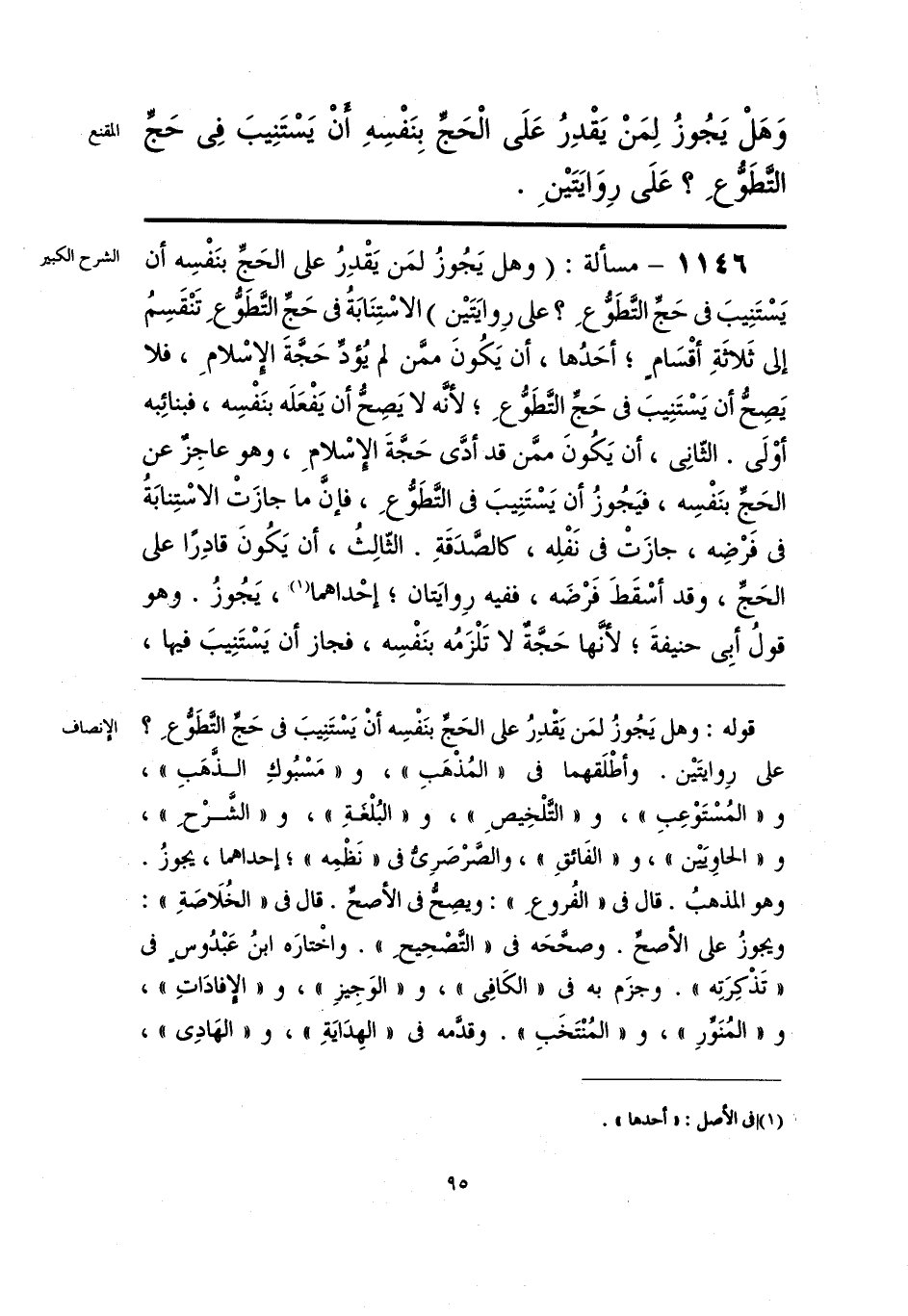 وَهَلْ يَجُوزُ لِمَنْ يَقْدِرُ عَلَى الْحَجِّ بِنَفْسِهِ أنْ يَسْتَنِيبَ فِى حَجِّ التَّطَوُّعِ؟ عَلَى رِوَايَتَيْنِ.