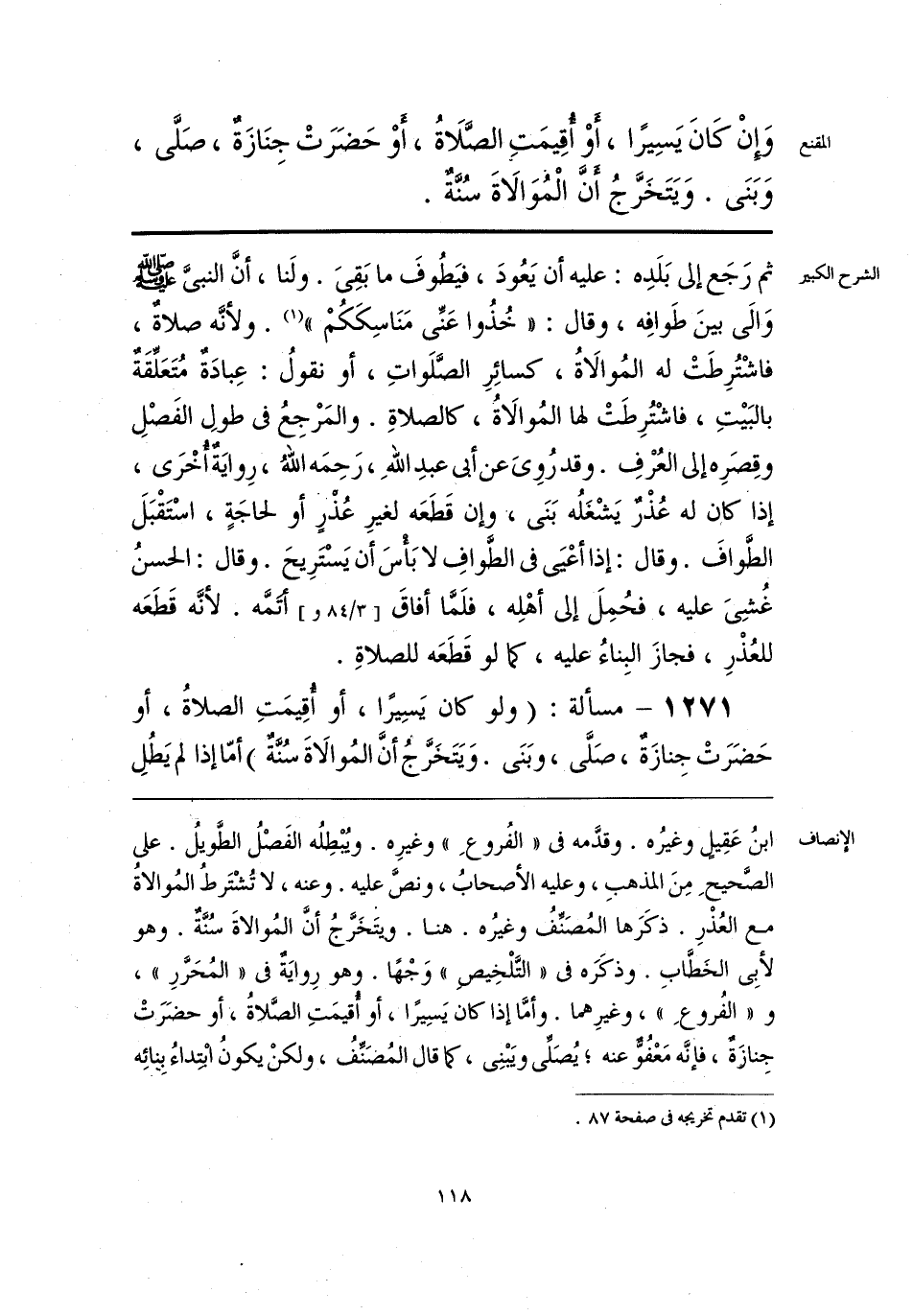 ابنُ عَقِيلٍ وغيرُه. وقدَّمه فى «الفُروعِ» وغيرِه. ويُبْطِلُه الفَصْلُ الطَّويلُ. على الصَّحيحِ مِنَ المذهبِ، وعليه الأصحابُ، ونصَّ عليه. وعنه، لا تُشْتَرطُ المُوالاةُ مع العُذْرِ. ذكَرَها المُصَنِّفُ وغيرُه. هنا. ويتَخَرَّجُ أنَّ المُوالاةَ سُنَّةٌ. وهو لأبِى الخَطَّابِ. وذكًره فى «التَّلْخِيصِ» وَجْهًا. وهو رِوايَةٌ فى «المُحَرَّرِ»، و «الفُروعِ»، وغيرِهما. وأمَّا إذا كان يَسِيرًا، أو أُقيمَتِ الصَّلاةُ، أو حضَرَتْ جِنانزَةٌ، فإنَّه مَعْفُوٌّ عنه، يُصَلِّى ويَبْنِى، كما قال المُصَنِّفُ، ولكنْ يكونُ ابْتِداءُ بِنائِه