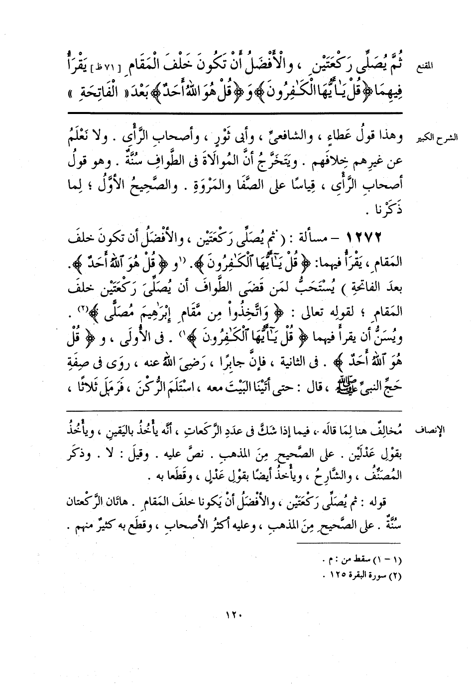 قوله: ثم يُصَلِّى رَكْعَتَيْنْ، والأفْضَلُ أنْ يَكونا خلفَ المَقامِ. هاتَان الرَّكْعتان سُنَّةٌ. على الصَّحيحِ مِنَ المذهبِ، وعليه أكثرُ الأصحابِ، وقطَع به كثيرٌ منهم.