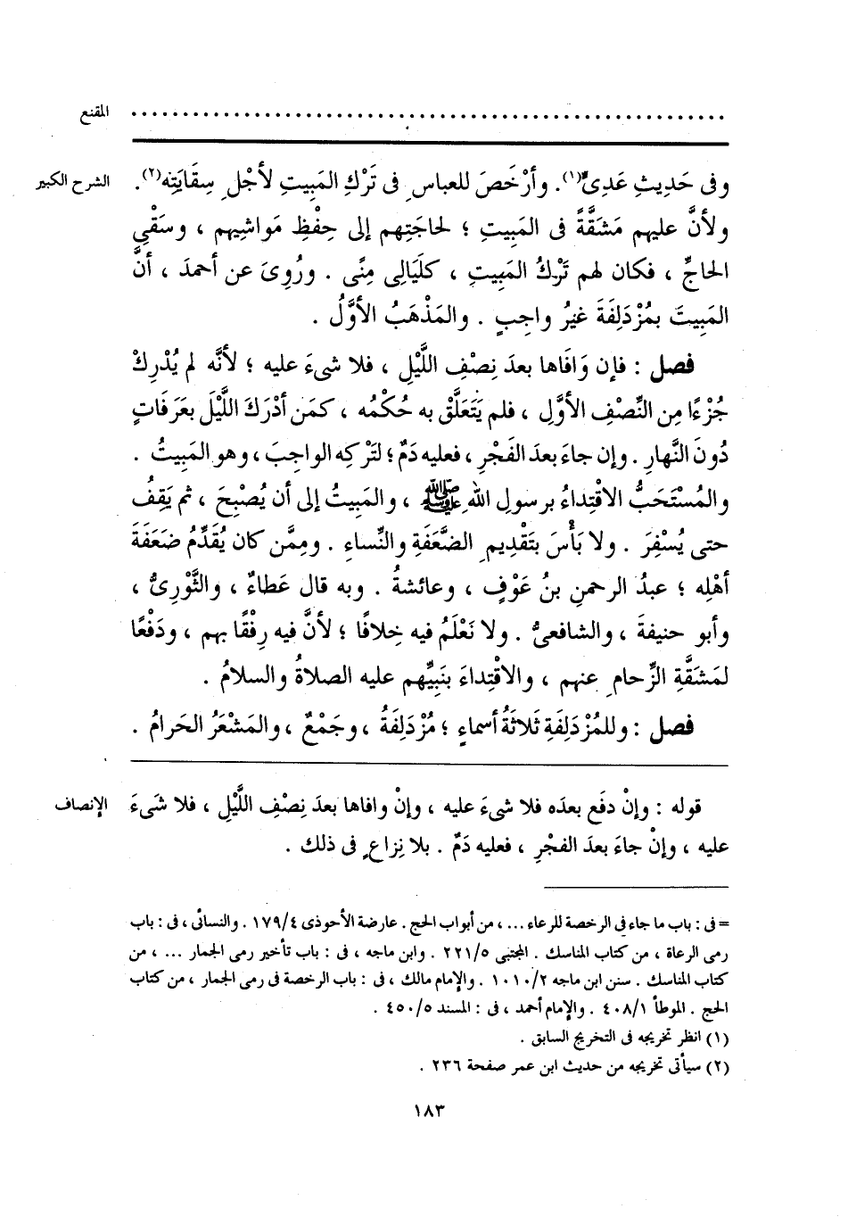 قوله: وإنْ دفَع بعدَه فلا شئَ عليه، وإنْ وافاها بعدَ نِصْفِ اللَّيْلِ، فلا شَئَ عليه، وإنْ جاءَ بعدَ الفجْرِ، فعليه دَمٌ. بلا نِزاعٍ فى ذلك.