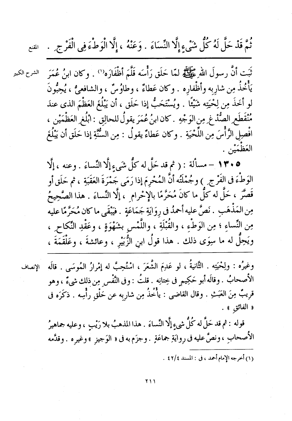 قوله: ثم قد حَلَّ له كُلُّ شئٍ إلَّا النِّساءَ. هذا المذهبُ بلا رَيْبٍ، وعليه جماهيرُ الأصحابِ، ونصَّ عليه فى رِوايَةِ جماعَةٍ. وجزَم به فى «الوَجيزِ» وغيرِه. وقدَّمه