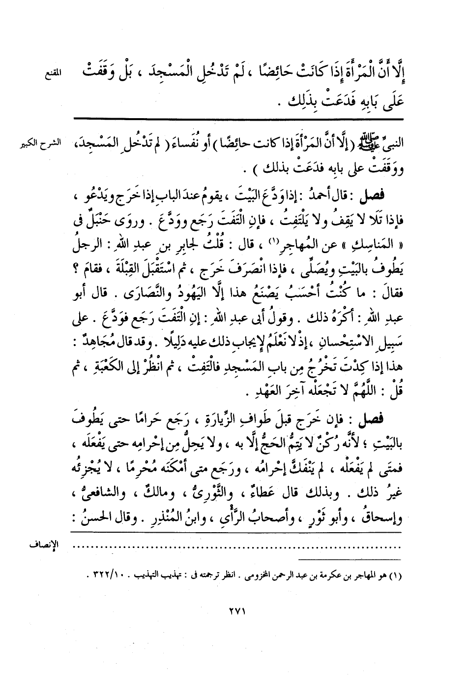 إِلَّا أنَّ الْمَرْأَةَ إِذَا كَانَتْ حَائِضًا، لَمْ تَدْخُلِ الْمَسْجِدَ، بَلْ وَقَفَتْ عَلَى بَابِهِ فَدَعَتْ بِذَلِك.