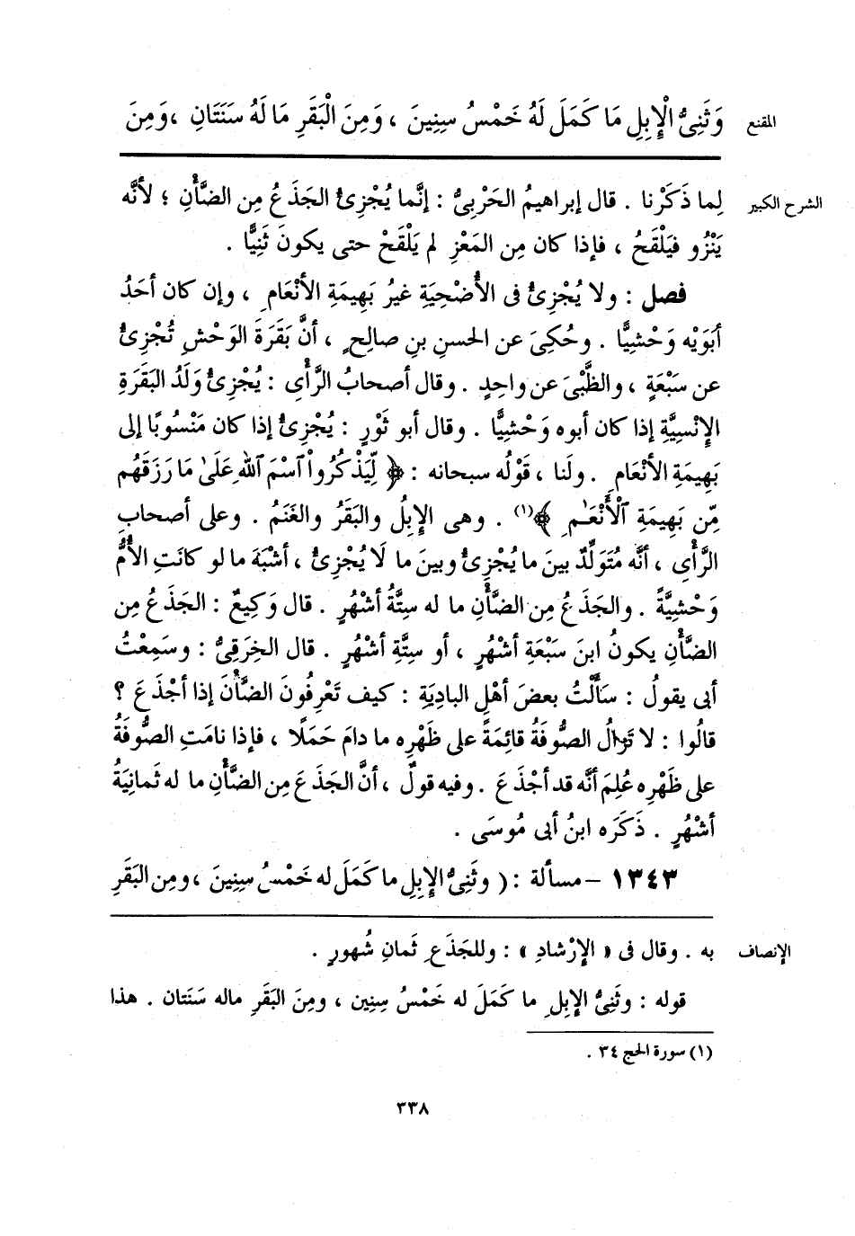 وَثَنِىُّ الإِبِلِ مَا كَمَلَ لَهُ خَمْسُ سِنِينَ، وَمِنَ الْبَقَرِ مَا لَهُ سَنَتَانِ، وَمِنَ
