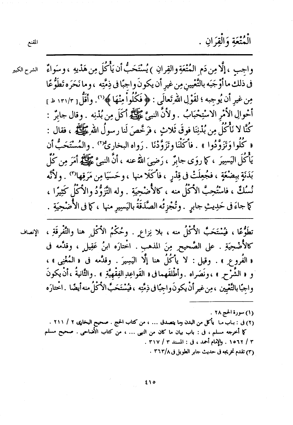 تطَوُّعًا، فيُسْتَحبَّ الأَكْلُ منه، بلا نِزاعٍ. وحُكْمُ الأكْلِ هنا والتَّفْرِقَةِ، كالأُضْحِيَةِ. على الصَّحيحِ مِنَ المذهبِ. اخْتارَه ابنُ عَقِيلٍ، وقدَّمه فى «الفُروعِ». وقيل: لا يأْكُلُ هنا إلَّا اليَسِيرَ. وقدَّمه فى «المُغْنِى»، و «الشَّرْح»، ونَصَراه. وأطْلقَهما فى «القَواعِدِ الفِقْهِيَّةِ». والثَّانيةُ، أنْ يكونَ واجِبًا بالتَّعْيِين، مِن غيرِ أنْ يكونَ واجِبًا فى ذِمَّتِه، فيُسْتَحَبَّ الأَكْلُ منه أيضًا. اخْتارَه