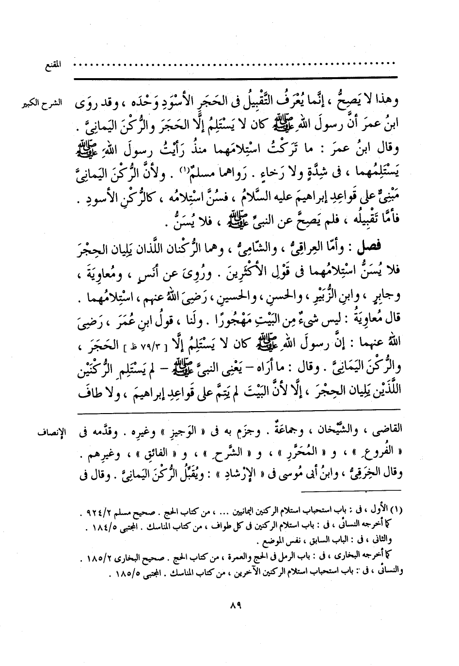 القاضى، والشَّيْخان، وجماعَةٌ. وجزَم به فى «الوَجيزِ» وغيرِه. وقدَّمه فى «الفُروعِ»، و «المُحَرَّرِ»، و «الشَّرحِ»، و «الفائقِ»، وغيرِهم. وقال الخِرَقِىُّ، وابنُ أبي مُوسى فى «الإرْشادِ»: ويُقَبِّلُ الرُّكْنَ اليَمانِىَّ. وقال فى