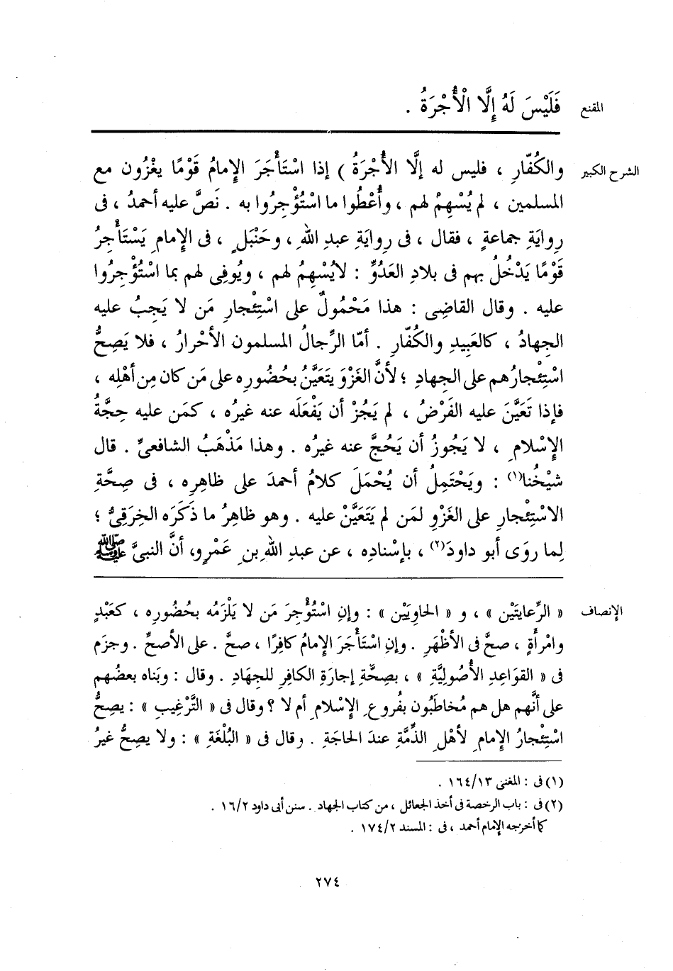 «الرِّعايتَيْن»، و «الحاوِيَيْن»: وإنِ اسْتُؤْجِرَ مَن لا يَلْزَمُه بحُضُورِه، كعَبْدٍ وامْرأَةٍ، صحَّ فى الأظْهَرِ. وإنِ اسْتَأْجَرَ الإِمامُ كافِرًا، صحَّ. على الأصحِّ. وجزَم فى «القوَاعِدِ الأصُولِيَّةِ»، بصِحّةِ إجارَةِ الكافِرِ للجِهَادِ. وقال: وبَناه بعضُهم على أنَّهم هل هم مُخاطَبُون بفُروعِ الإِسْلامِ أم لا؟ وقال فى «التَّرْغِيب»: يصِحُّ اسْتِئْجارُ الإِمامِ لأهْلِ الذِّمَّةِ عندَ الحاجَةِ. وقال فى «البُلْغَةِ»: ولا يصِحُّ غيرُ