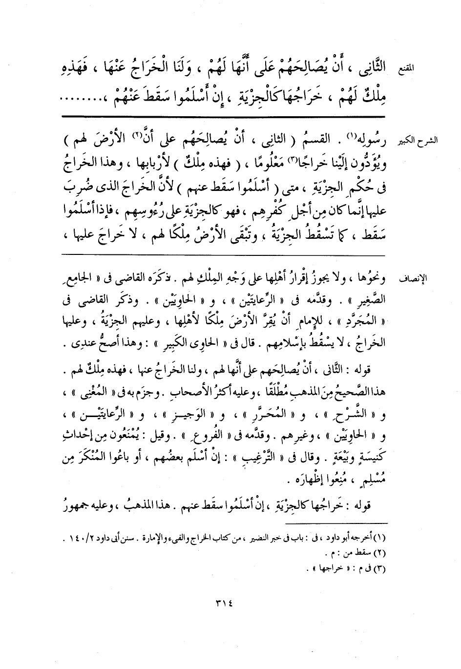 الثَّانِى، أنْ يُصَالِحَهُمْ عَلَى أَنَّهَا لَهُمْ، وَلَنَا الْخَرَاجُ عَنْهَا، فَهَذِهِ مِلْكٌ لَهُمْ، خَرَاجُهَا كَالْجِزْيَةِ، إِنْ أَسْلَمُوا سَقَطَ عَنْهُمْ،