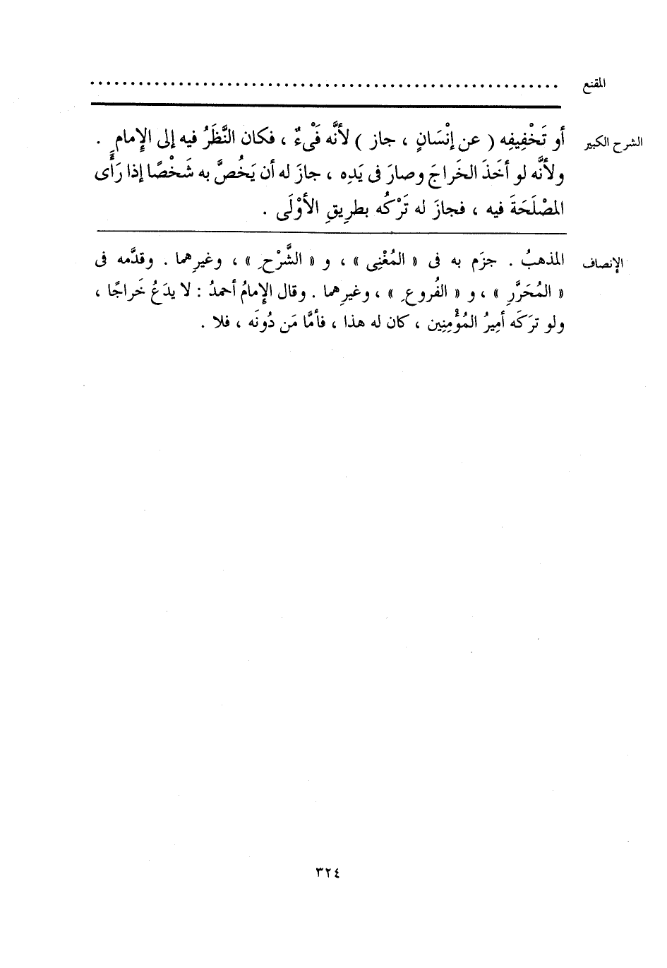 المذهبُ. جزَم به فى «المُغْنِى»، و «الشَّرْحِ»، وغيرِهما. وقدَّمه فى «المُحَرَّرِ»، و «الفُروعِ»، وغيرِهما. وقال الإِمامُ أحمدُ: لا يدَعُ خَراجًا، ولو ترَكَه أمِيرُ المُؤْمِنِين، كان له هذا، فأمَّا مَن دُونَه، فلا.