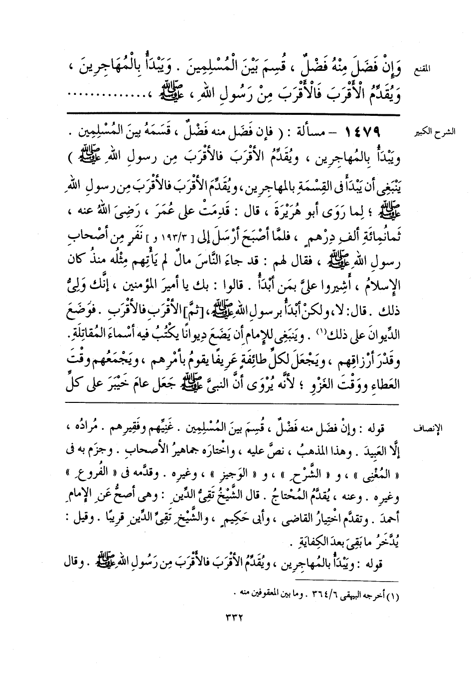 وَإنْ فَضَلَ مِنْهُ فَضْلٌ، قُسِمَ بَيْنَ الْمُسْلِمِينَ. وَيَبْدَأُ بِالْمُهَاجِرِينَ، وَيُقَدِّمُ الْأقْرَبَ فَالأَقْرَبَ مِنْ رَسُولِ اللَّهِ، -صلى اللَّه عليه وسلم-،