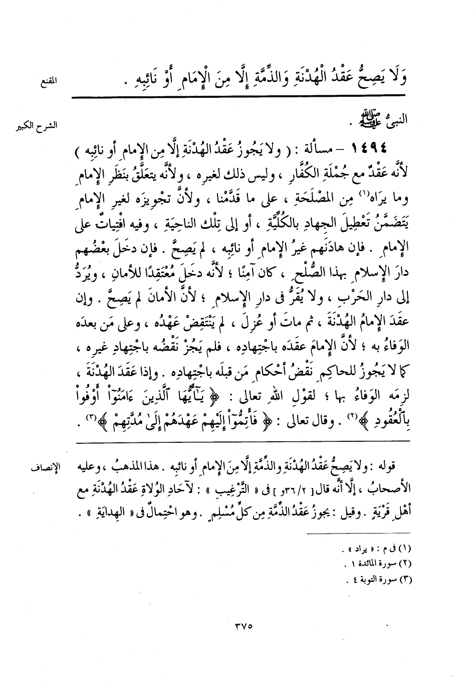 وَلَا يَصِحُّ عَقْدُ الْهُدْنَةِ وَالذِّمَّةِ إِلَّا مِنَ الْإِمَامِ أَوْ نَائِبِهِ.