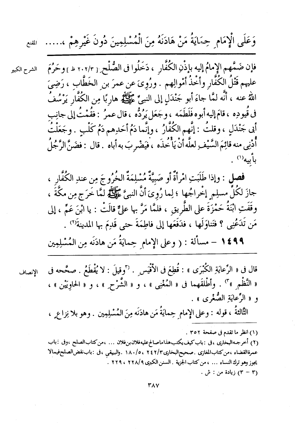 الثَّالثةُ، قوله: وعلى الإِمامِ حِمايَةُ مَن هادَنَه مِنَ المُسْلِمِين. وهو بلا نِزاعٍ،