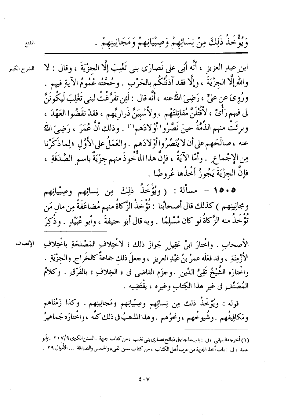 الأصحابِ. واخْتارَ ابنُ عَقِيلٍ جَوازَ ذلك؛ لاخْتِلافِ المَصْلحَةِ باخْتِلافِ الأزْمِنَةِ، وقد فعَلَه عمرُ بنُ عَبْدِ العزِيزِ، وجعلَ ذلك جماعةٌ كالخَراجِ والجِزْيَةِ. واخْتارَه الشَّيْخُ تَقِىُّ الدِّينِ. وجزَم القاضى فى «الخِلافِ» بالفَرْقِ. وكلامُ المُصَنِّفِ فى غيرِ هذا الكِتابِ وغيرِه، يقْتَضِيه.