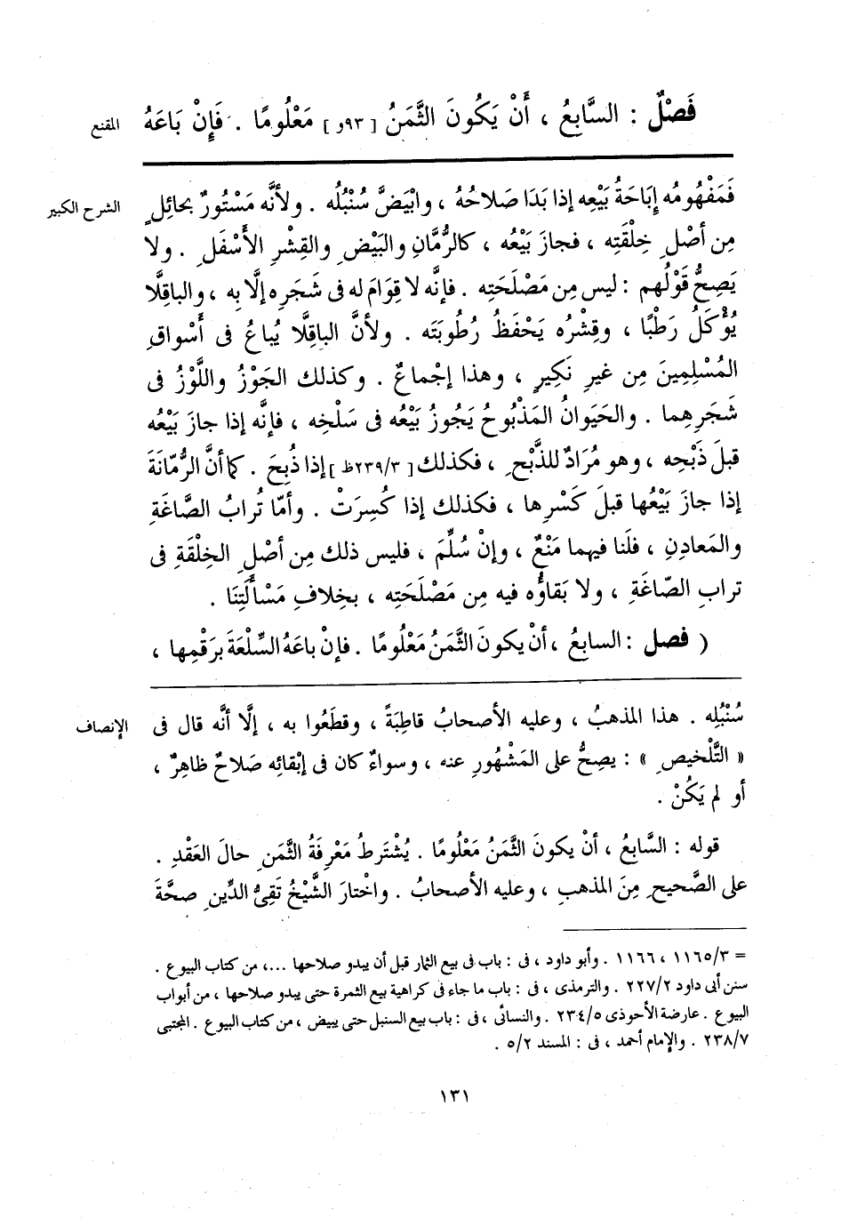 قوله: السابعُ، أَنْ يكونَ الثَّمَنُ مَعْلُومًا. يُشْتَرطُ مَعْرِفَةُ الثَّمَنِ حالَ العَقْدِ. على الصَّحيحِ مِنَ المذهبِ، وعليه الأصحابُ. واخْتارَ الشَّيْخُ تَقِىُّ الدِّينِ صحَّةَ